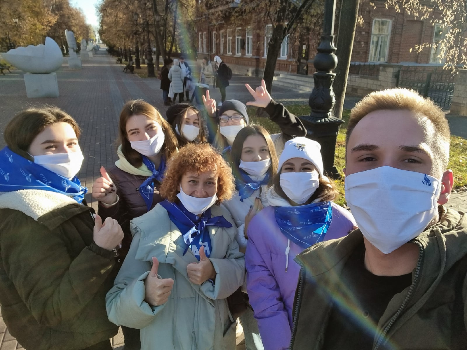 Вооружившись хозяйственными инструментами, мешками и перчатками студенты убрали листву с тротуаров и газонов аллеи.