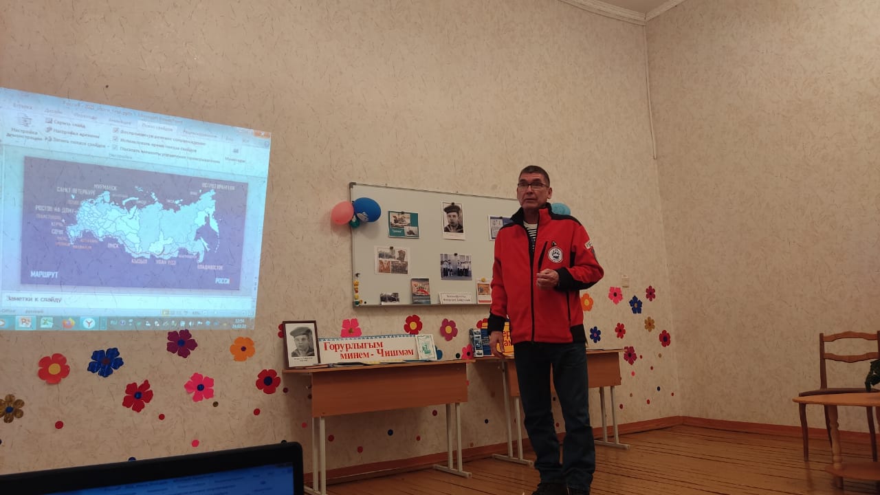 В актовом зале школы села Чишма Дюртюлинского района 24 февраля состоялась встреча учащихся и педагогов Чишминского филиала МБОУ СОШ села Исмаилово с делегацией регионального отделения Русского географического общества в Республике Башкортостан, приуроченная к Дню защитника Отечества.