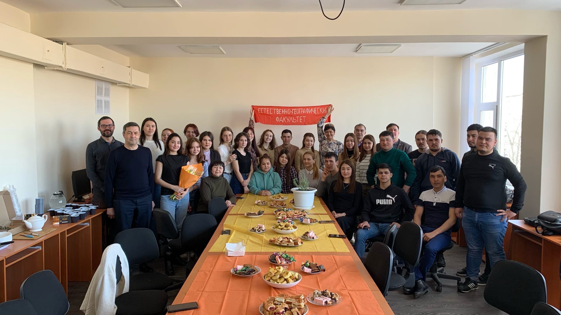 И сегодня начало праздника НАВРУЗ отметили на естественно-географическом факультете, где учится много студентов из стран Азии, где этот праздник имеет государственное значение. Больше всего среди них ребят из Туркменистана - так сложилось, что на ЕГФ учится 48 студентов из этой страны (всего в вузе - 93). Но это общий праздник, двери были открыты для всех. Поздравить с праздником пришли преподаватели кафедры экологии, географии и природопользования, декан ЕГФ Венер Нуруллович Саттаров, начальник управления международных связей Радик Зинатович Юлбаев. Старший преподаватель Зимфира Шарифьяновна Тимербаева рассказала об особенностях празднования у разных народовх. Одним из обычаев НАВРУЗА во многих странах является посадка деревьев в эти дни. Поскольку у нас еще очень холодно, мы всё же соблюли традицию и пересадили в большое кашпо многолетнюю лаванду - пусть растет и радует нас своим цветом и запахом!