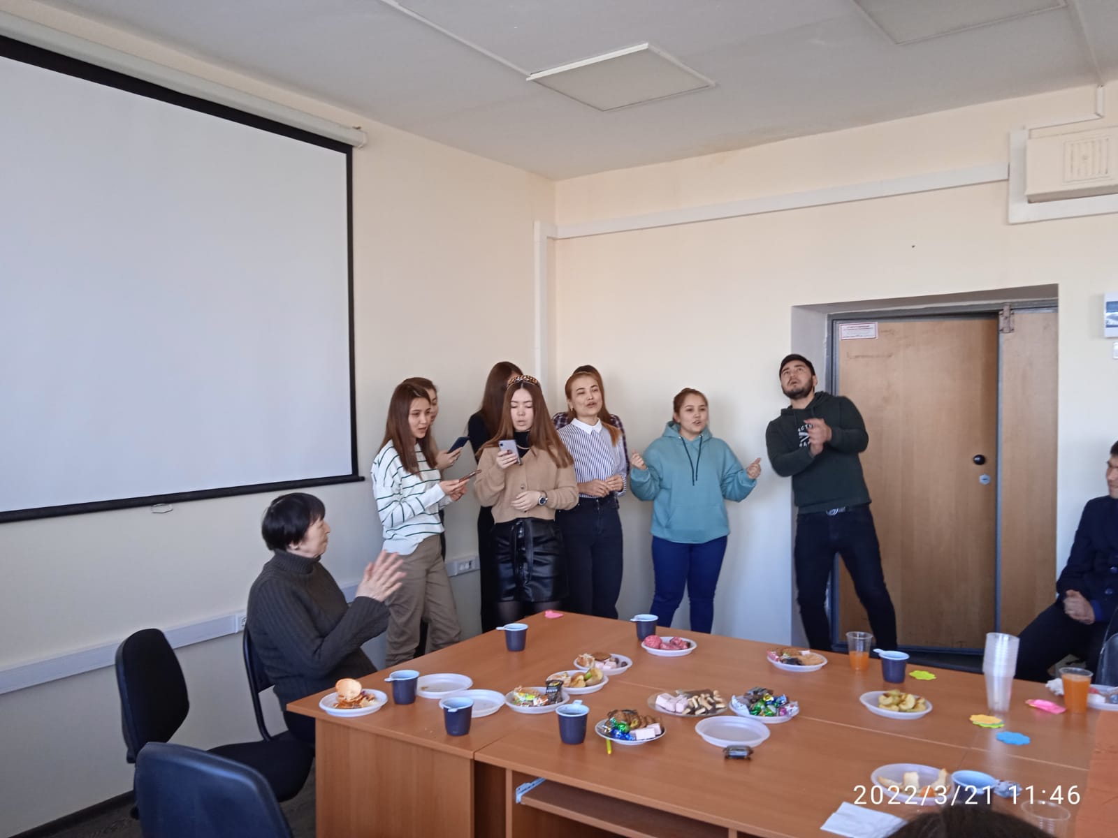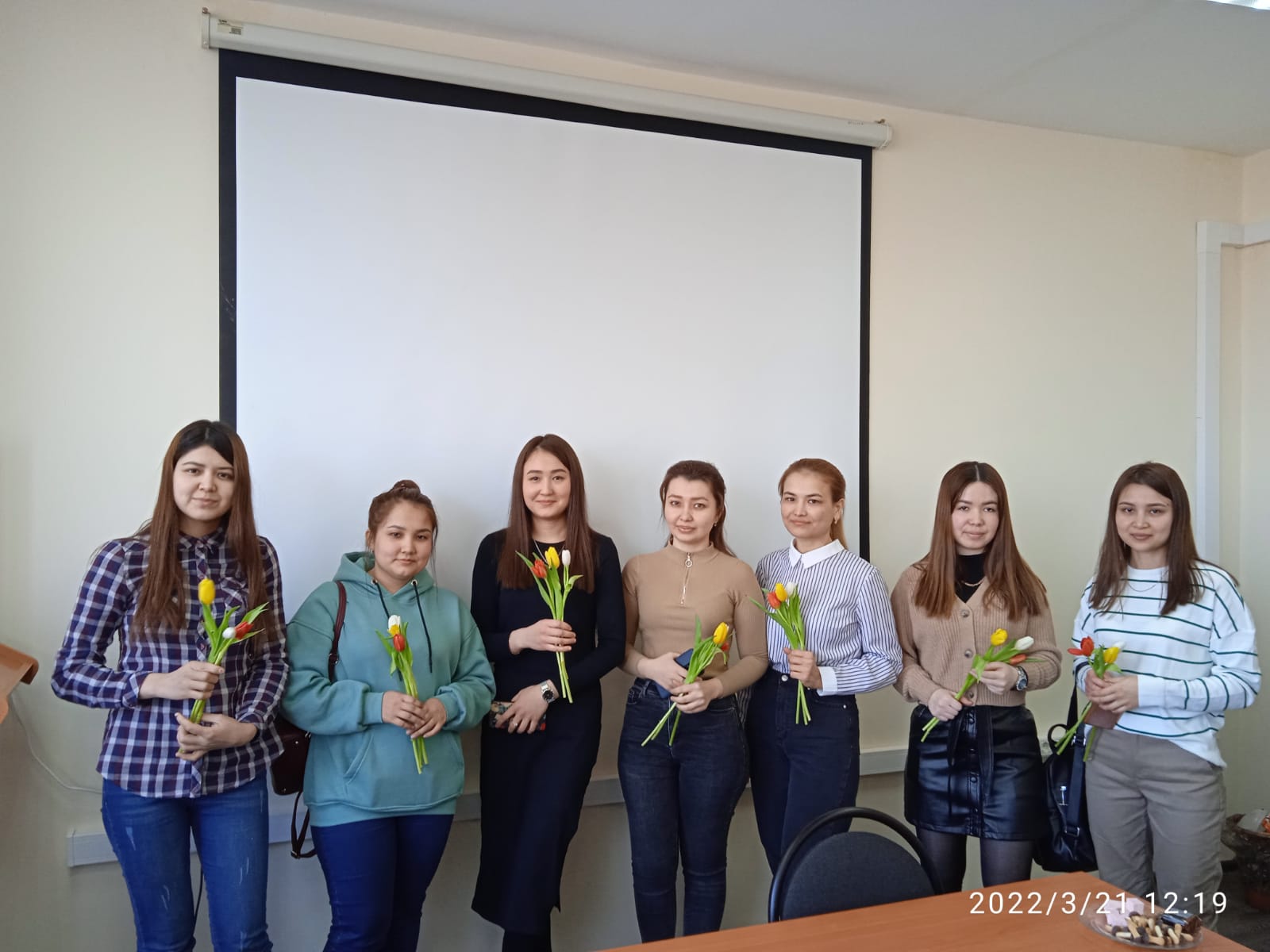 Весна идет! Весна - это цветы, и цветы сегодня тоже дарили девчонкам. И еще дарили друг другу песни и танцы - звучали песни на татарском, туркменском, русском языках. "Туган як" ("Родной край") сменялся одой Туркменистану, а завершилась встреча песней "Мы желаем счастья вам!" В честь праздника весны ребята написали пожелания друг другу и всем нам и разместили их в холле нашего этажа. НАВРУЗ менан!
