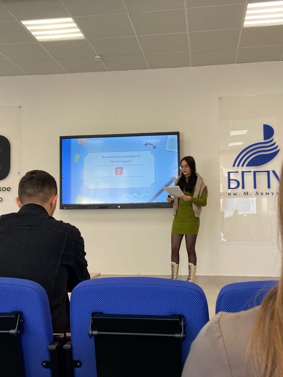 С  14 марта на базе технопарка универсальных педагогических компетенций Акмуллинского университета проходило обучение обучающихся в Акселераторе студенческих проектов «Созидатели».  Команда студентов ЕГФ в составе Екатерины Резвановой, Алины  Арслановой, Элины Салимяновой, Ксении Рассказовой,  Ильвины Назмиевой (группа Б_БИО-31-19), Никиты Фролова (Б_БИО-11-21), Михаила Драпа  (МПОЭО-11-21) разработали и представили комиссии социальный проект исследовательской школы «Буду ученым», который планируется реализовать на базе СОЦ «Салихово» для детей из группы риска, в том числе без попечения родителей.