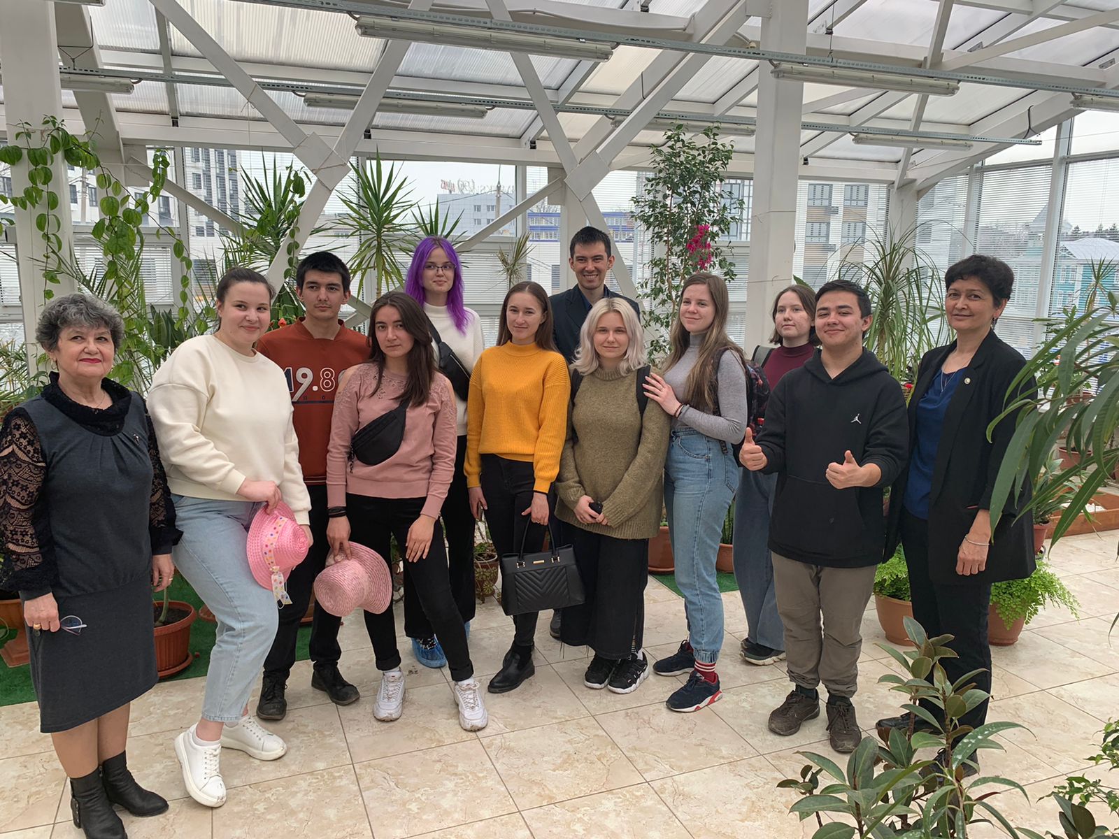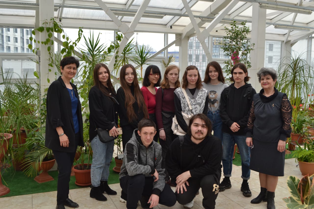 Поскольку большой группой ходить по лабораториям неэффективно, посещение сразу было спланировано так, что группа делится пополам, и вторая половина в это время идет в гости в городской эколого-биологический центр - они находятся совсем рядом друг с другом (потом наоборот). Директор ДЭБЦ Альфия Кагармановна и заместитель Венера Камиловна рассказали о работе центра и направлениях деятельности, показали учебные лаборатории и проекты ребят. Надолго задержались в оранжереи экоцентра, где произрастает множество экзотических растений. Кстати, студенты, обучающиеся по направлению, совпадающему с направлением образовательных программ, могут уже после второго курса работать в системе дополнительного образования детей параллельно с учебой.