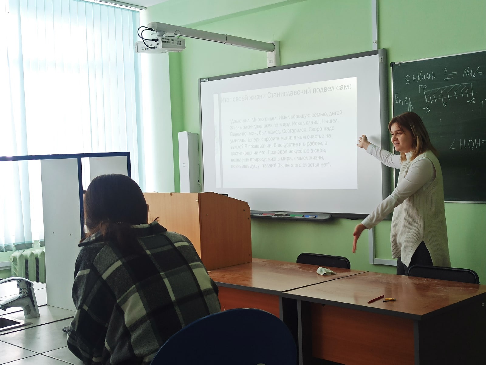 Студенты 3-го курса ПО-ХБ-31-20 в своем кураторском часе рассмотрели на тему «К.С. Станиславский. Жизнь в искусстве». В ходе мероприятия первокурсники познакомились с биографией и творчеством К. Станиславского. Затем молодые люди приняли участие в дискуссии об идеях и приемах Станиславского, которые могут быть полезны не только желающим посвятить свою жизнь сцене, но и будущим учителям.
