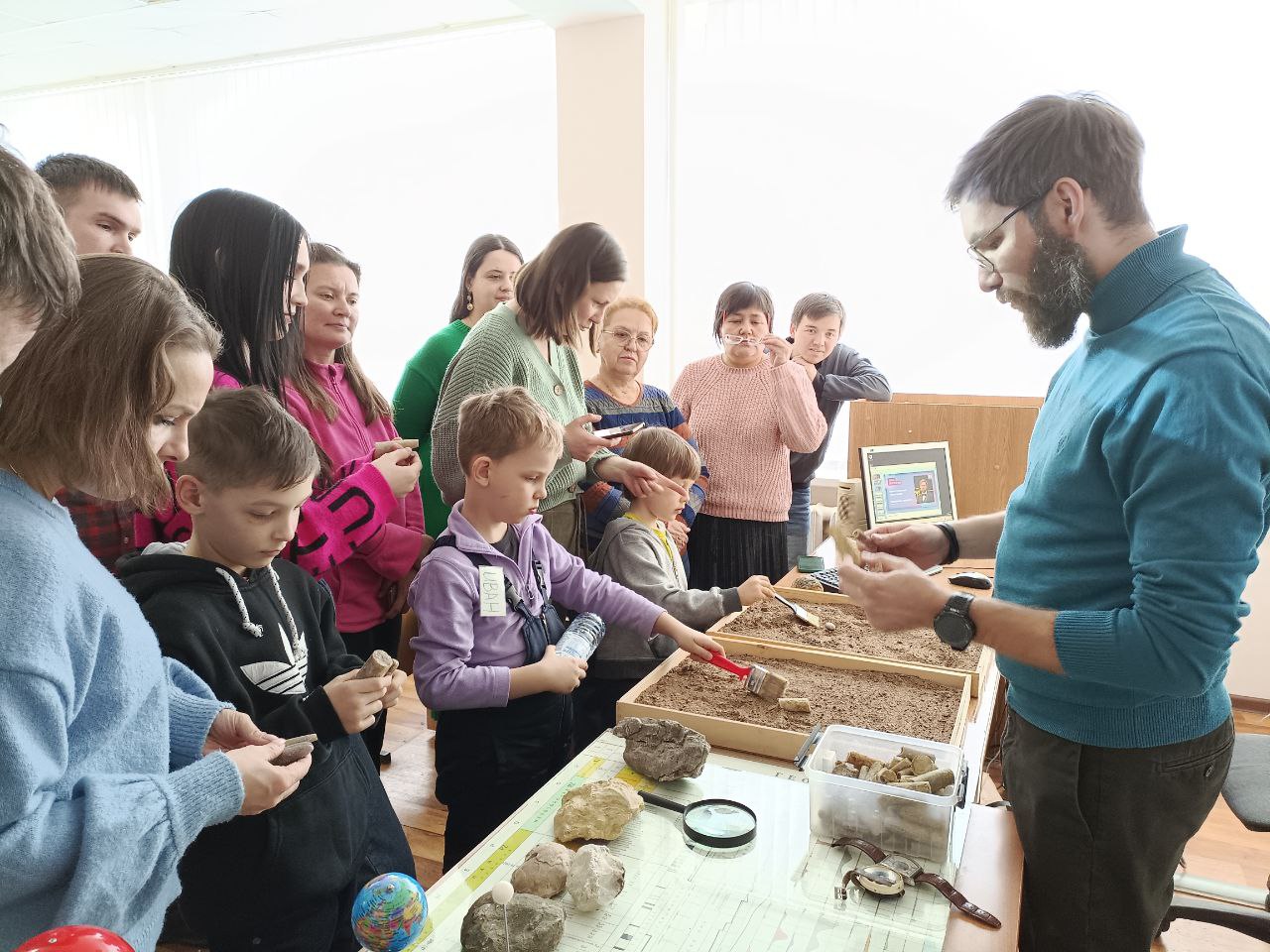 Первая лекционная часть была посвящена геологической истории Земли и формированию территории, на которой сегодня расположен геопарк "Торатау" со знаменитыми Стерлитамакскими шиханами. А во второй практической части участники смогли познакомиться с ископаемыми останками, найденными на территории геопарка "Торатау", примерить на себя роль палеонтологов - поучаствовать с раскопках с соблюдением техники работы ученых. Со взрослой аудиторией обсудили вопрос, который волнует сегодня многих - причины и механизмы возникновения недавнего сильнейшего землетрясения в Турции и близлежащих странах, и вероятность и интенсивность сейсмической активности на территории нашей республики.