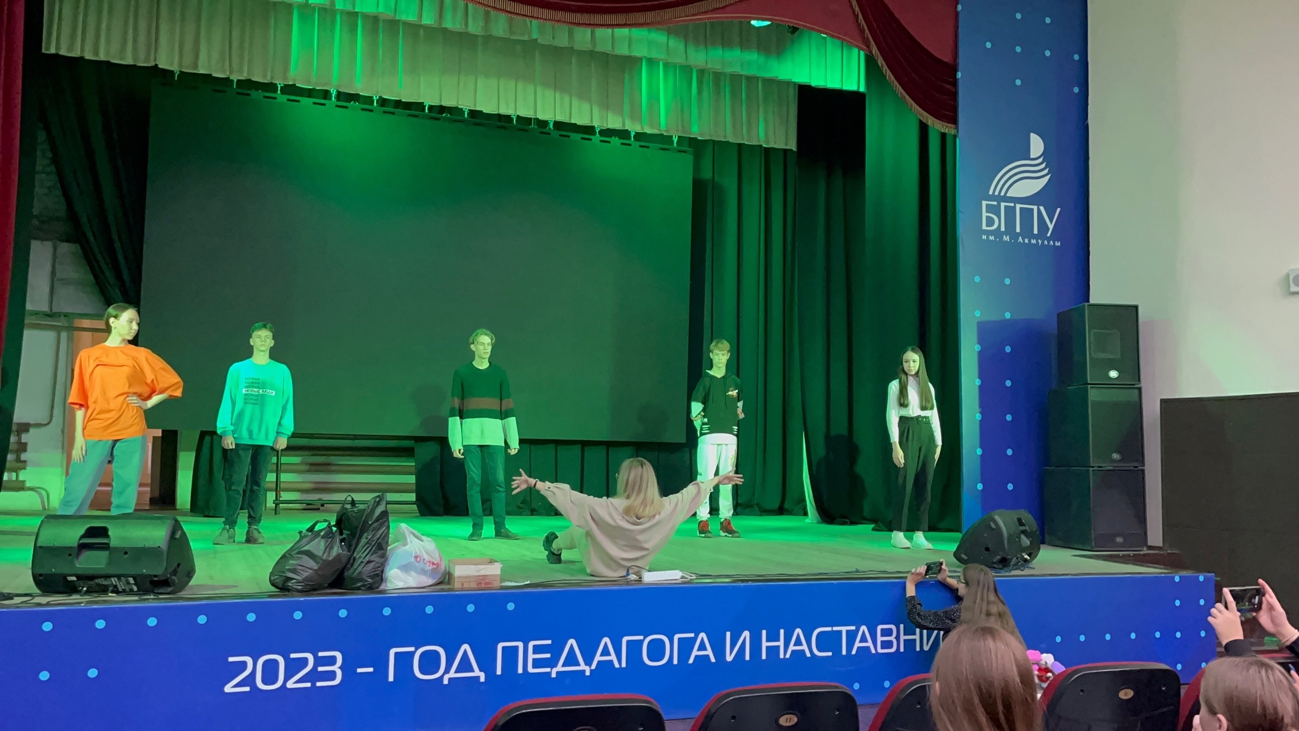 С технической стороны была проведена работа со светом, звуком, экраном..