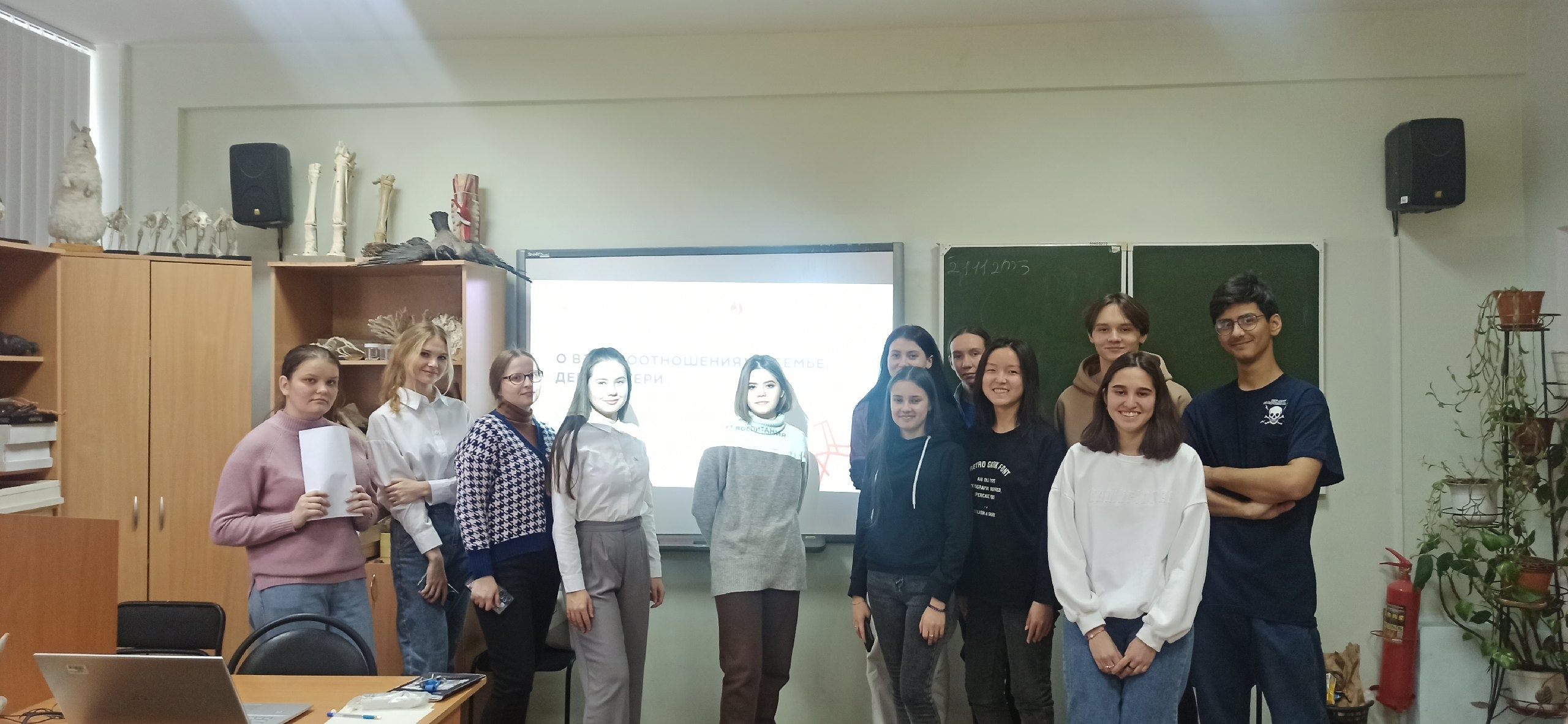 В преддверии Дня матери 20 ноября 2023  студентки 3 курса  Регина Розыева, Виктория Блинова, Регина Шакурова и Розалина Байтуганова провели внеурочное занятие с первокурсниками естественно-географического факультета о взаимоотношениях в семье. Целью занятия стало  развитие у обучающихся представлений о роли и значении семьи в жизни человека, чувства благодарности к своим матерям, уважения к материнству; создание стимула к размышлениям об образе своей будущей семьи, к формированию ответственного отношения к браку и родительству.