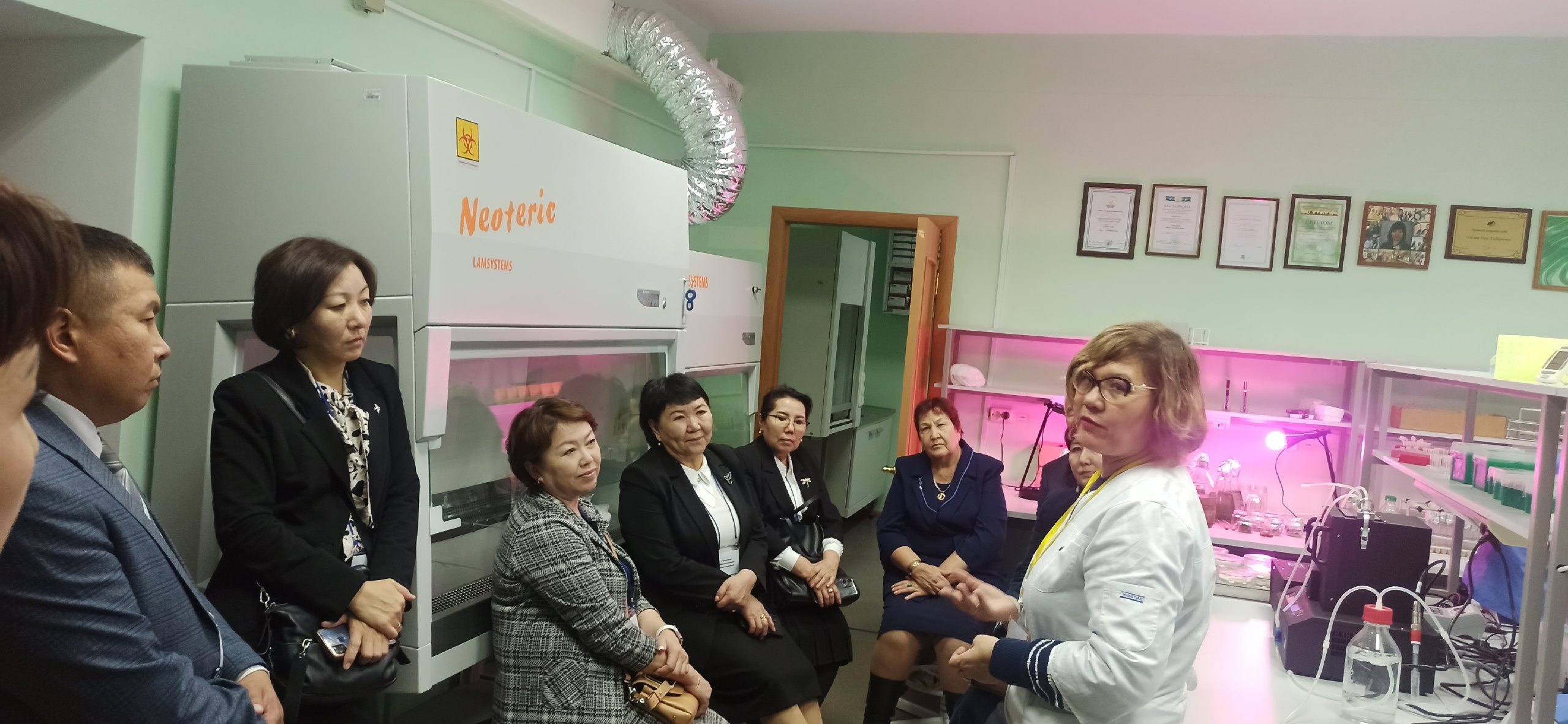В рамках знакомства с деятельностью Акмуллинского университета 22 ноября  гости из Киргизии посетили Естественно-географический факультет. И.о. заведующего кафедрой Венер Саттаров рассказал участникам делегации  о музее геологии и его экспонатах, доцент кафедры генетики и химии Лилия Якупова познакомила гостей с Научно-образовательной лабораторией экологического и естественнонаучного образования, а профессор кафедры биоэкологии и биологического образования Лира Гайсина поведала об основных работах  и достижениях Научно-исследовательской лаборатории молекулярной систематики фототрофных микроорганизмов им. Л.С. Хайбуллиной.