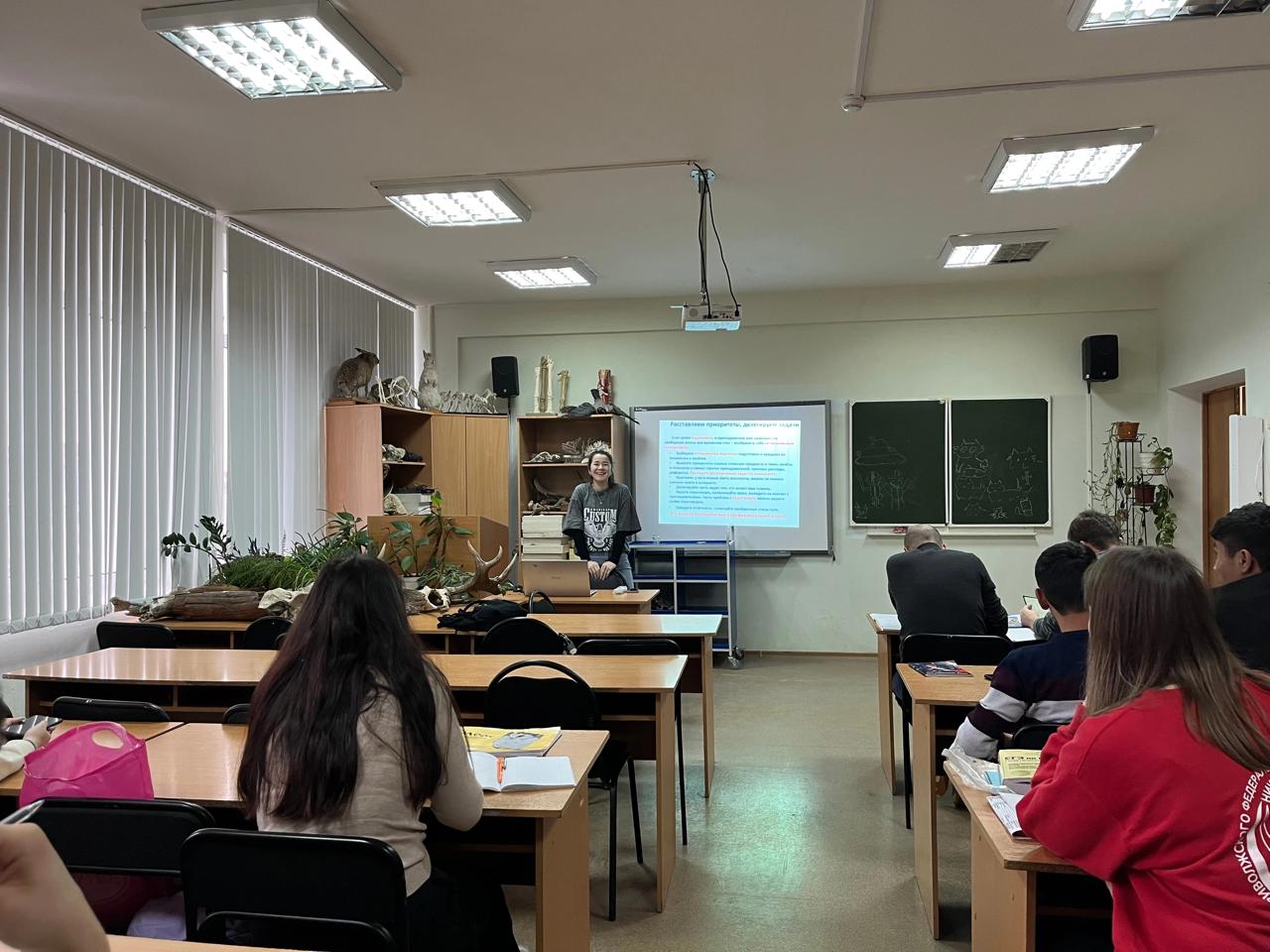 Куратор первого курса Лилия Сафиуллина совместно со студентами 3 курсов провели беседу с первокурсниками направления биология и химия об их предстоящей первой сессии.