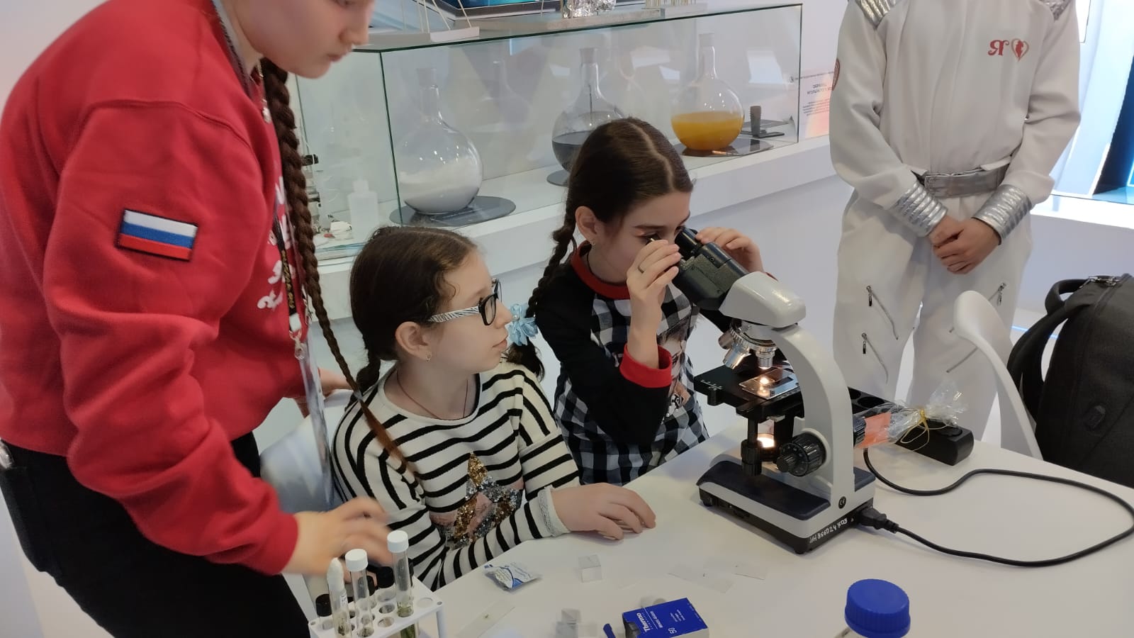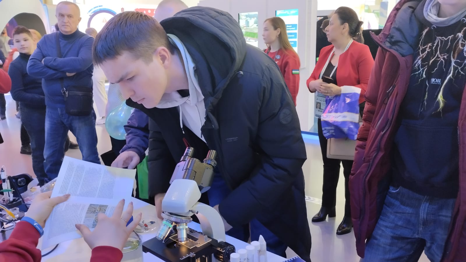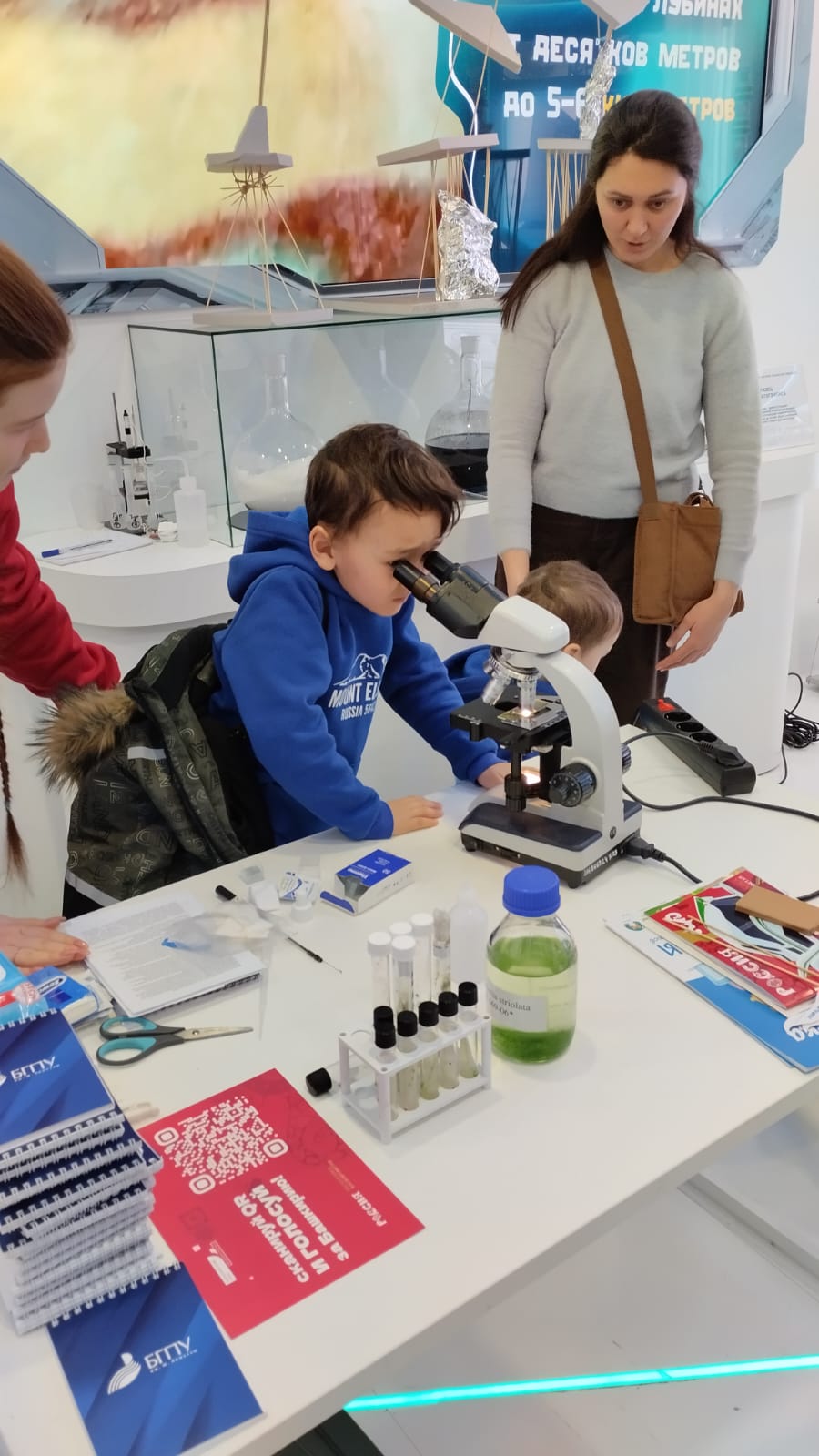 Наш университет представила студентка Естественно-географического факультета Муфазалова Альфия, и   преподаватель кафедры экологии, географии и природопользование Шугаипова Линара Равильевна. Альфия провела мастер класс "Водоросли цианобактерии для освоения космоса" и помогла гостям выставки самим приготовить образец привезенных водорослей и рассмотреть под микроскопом.  Активный интерес к данной теме проявили не только дети школьного возраста, но и взрослые гости ВДНХ.