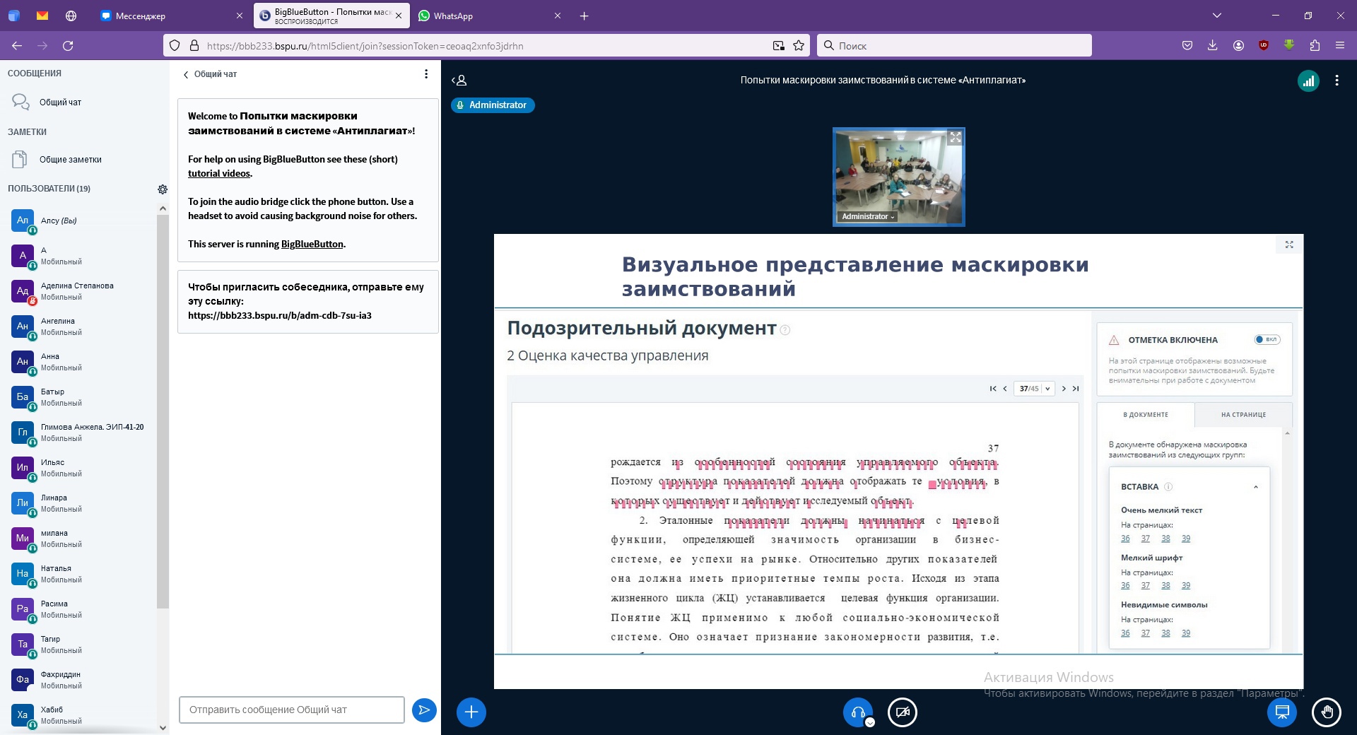 В рамках образовательной программы для студентов выпускного курса состоялась лекция на актуальную тему: " Антиплагиат: Попытки маскирования заимствований в системе "Антиплагиат". Опытный специалист в области оценки оригинальности текстов рассказал о способах обнаружения и предотвращения некорректных заимствований, а также о важности самостоятельного исследования и анализа информации при подготовке научных работ. На лекции были рассмотрены основные методы маскирования заимствований, такие как изменение формы слова, перестановки слов и использование синонимов и другие. Лекция вызвала большой интерес у студентов и способствовала повышению их осведомленности о важности самостоятельной работы над исследованиями.