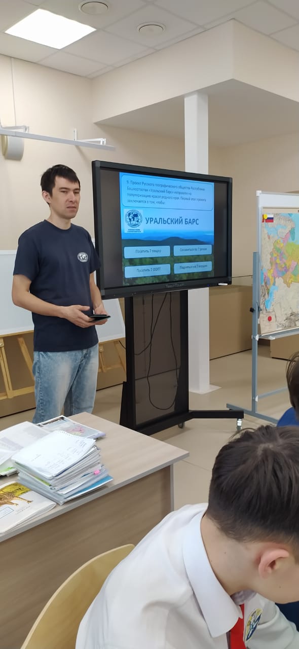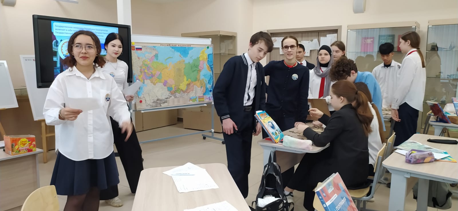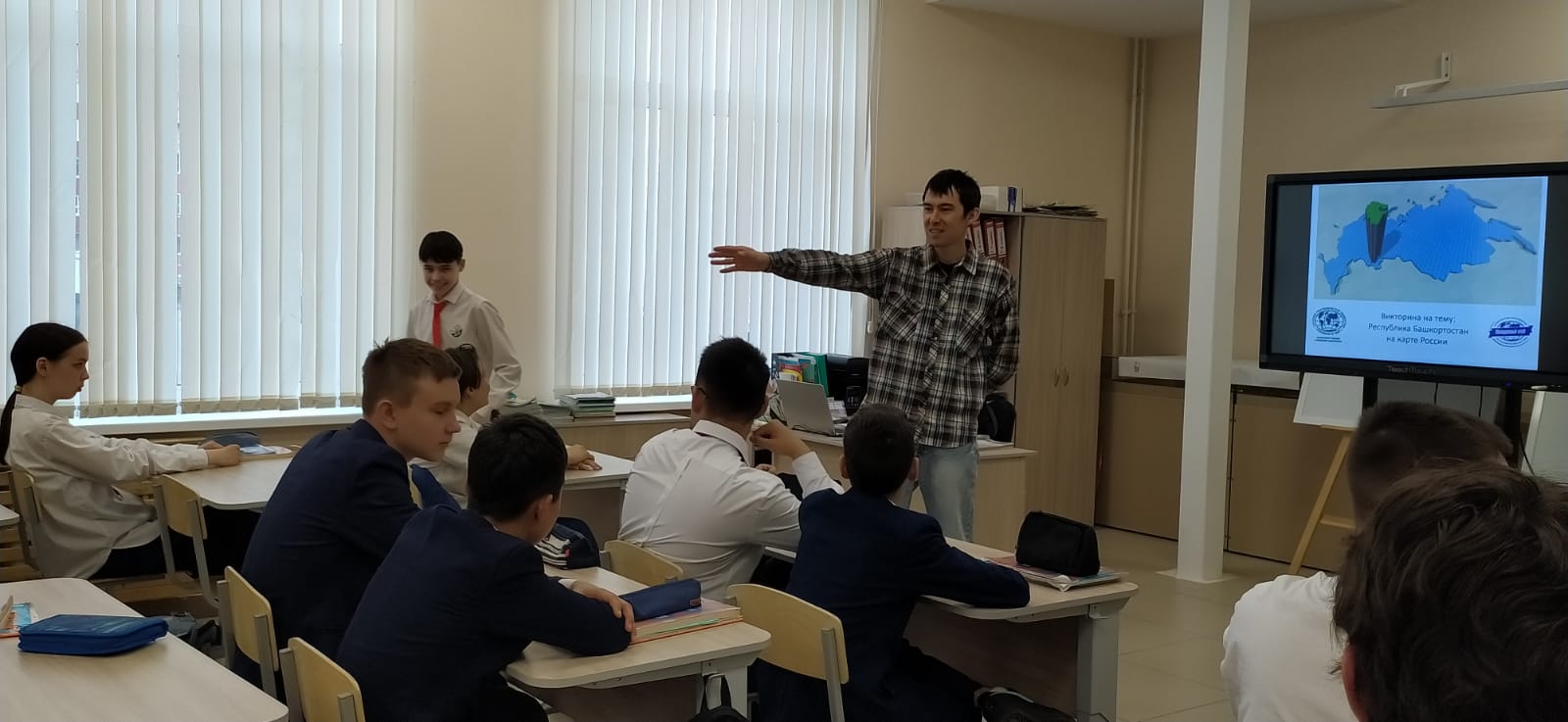 В рамках взаимодействия с психолого-педагогическими классами 25 апреля канд. биол. наук, доцент Г.Г. Хамидуллина и канд. биол. наук, ст. преподаватель Р.М. Халитов провели Квиз-игру по географии для учащихся 8 класса 161 лицея. Мероприятие началось с увлекательной викторины. Три команды школьников активно отвечали на вопросы, общались и собирали спилс-карты Республики Башкортостан. С учащимися 5 классов было проведено практическое занятие-игра «Живая карта».