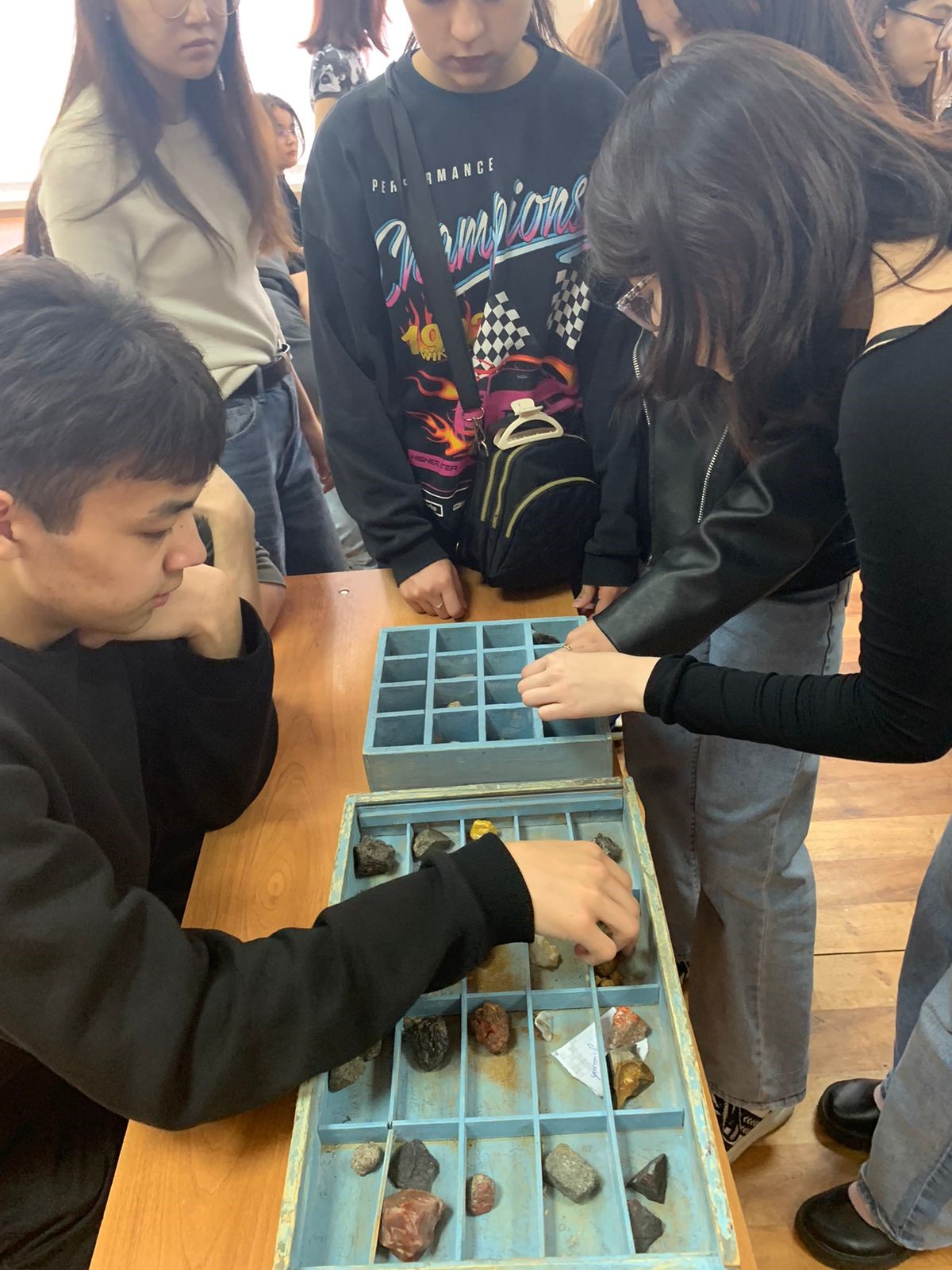 На кафедре экологии, географии и природопользования, где школьники встретились с зав. кафедрой В.Н. Саттаровым и преподавателем Л.Р. Шугаиповой, ребята ознакомились с работой научно-образовательной лаборатории экологического и естественнонаучного образования, минералогическими экспонатами, хранящимися в музее геологии, энтомологической коллекцией О.С. Муравицкого, представленной на кафедре, а также материально-технической базой, позволяющей на кафедре реализовывать образовательные программы, связанные с географией, экологией и туризмом.
