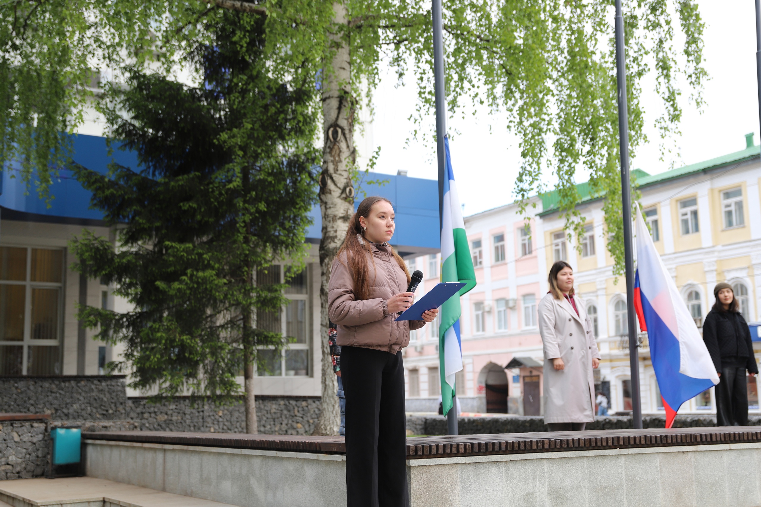 13 мая перед первым корпусом БГПУ имени М. Акмуллы состоялась еженедельная торжественная церемония поднятия Государственного флага Российской Федерации, флага Республики Башкортостан, Министерства просвещения Российской Федерации и Акмуллинского университета. В ней приняли участие студенты и преподаватели естественно-географического факультета Башгоспедуниверситета.