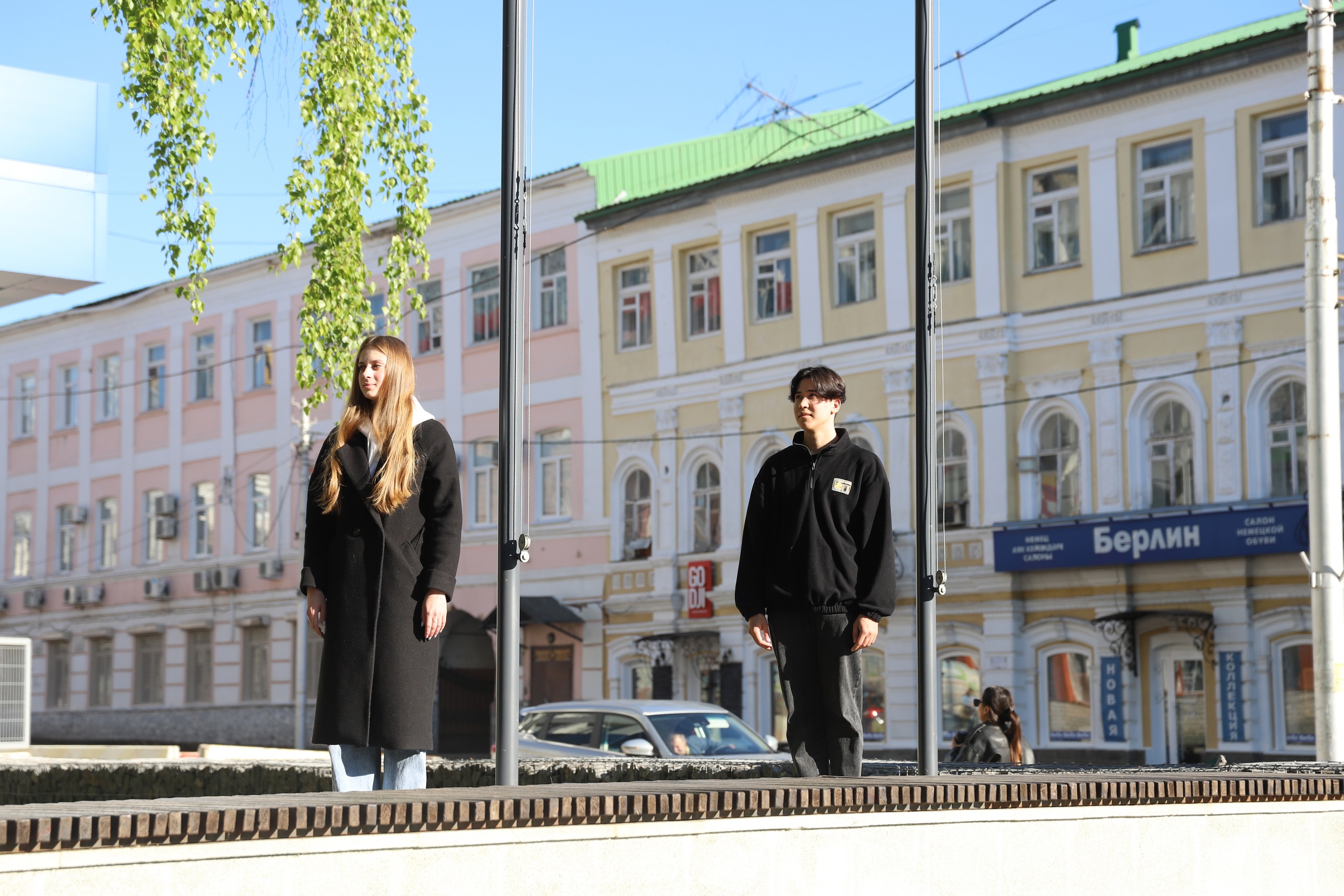 Сегодня почетное право поднять флаги было предоставлено лауреатам 1 степени вузовского песенного конкурса «Битва хоров»:
