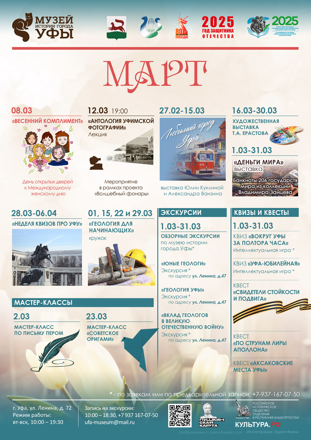 Музей создан в 2016 г., с целью сохранения историко-культурных ценностей, формирования у посетителей чувства патриотизма и любви к родному краю и передачи знаний будущим поколениям. Студенты окунулись в историю города, узнали о ярких событиях и роли личностей в истории города Уфа. Ребята узнали что такое бонистика (вспомогательная историческая дисциплина, изучающая денежные знаки и боны как исторические документы). Участвовали в мастер-классе по купюрам стран мира.