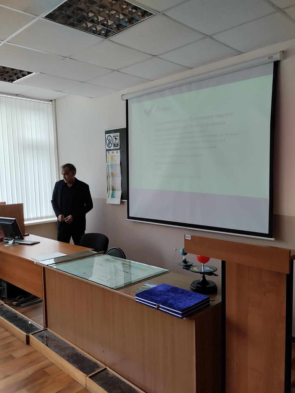 11 сентября на Естественно-географическом факультете прошел научный  семинар для студентов 1 курса. Главным спикером на семинаре был доктор биологических наук, профессор Саттаров Венер Нуруллович, с выступлением на тему: "Роль науки и образования в жизни человека». Венер Нуруллович рассказал об истории становления науки, не только в России, но и в мире, а также о базовых задачах науки, и главных достижениях. Студенты задавали вопросы, вели активный диалог со спикером.