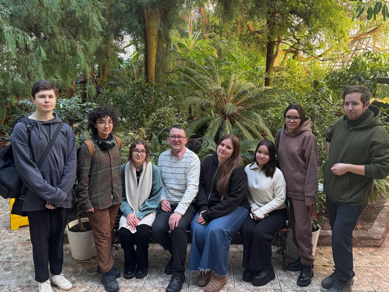 5 февраля состоялась экскурсия студентов-биоэкологов в Южно-Уральский ботанический сад-институт под руководством доцента Тагира Рустэмовича Кабирова. В рамках образовательной программы «Биоэкология» большое внимание уделяется проблемам изучения и сохранения биоразнообразия. Студенты смогли на практике познакомиться с уникальной коллекцией флоры со всего мира. Особое впечатление произвела оранжерея тропических и субтропических растений, где будущие экологи увидели живые примеры биоразнообразия: от исполинских пальм и реликтов до изящных орхидей и насекомоядных растений. Сотрудники оранжереи провели для студентов подробную лекцию-экскурсию, рассказав не только о видовом разнообразии, но и об адаптациях растений к различным условиям, проблемах инвазивных видов и тонкостях сохранения редких экземпляров в условиях искусственной среды. На память об экскурсии в магазине при оранжерее был приобретен горшочек с традесканцией – теперь это новый член кафедры.