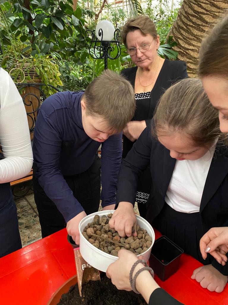 19 декабря в рамках проекта «Разработка и апробация дополнительной образовательной программы «Садовник» с применением инновационных технологий обучения и реабилитации для детей с синдромом Дауна», победителя конкурса 2022 года Фонда президентских грантов,  заведующей кафедрой биоэкологии и биологического образования Натальей Сухановой организована экскурсия участников проекта в оранжерею Южно-Уральского ботанического сада-института. Солнечные садовники совместно со школьниками-волонтёрами и студентами естественно-географического факультета познакомились с экзотическими тропическими и субтропическими растениями, привезенными из разных уголков земного шара. Детям очень понравились огромные пальмы и банановые растения. После экскурсии детям провели мастер-класс по посадке комнатных растений. Под руководством специалистов обучающиеся составили декоративные композиции с соблюдением всех правил комнатного цветоводства. После проведенного занятия учащиеся забрали с собой горшочки с растениями с целью озеленения школьных кабинетов.