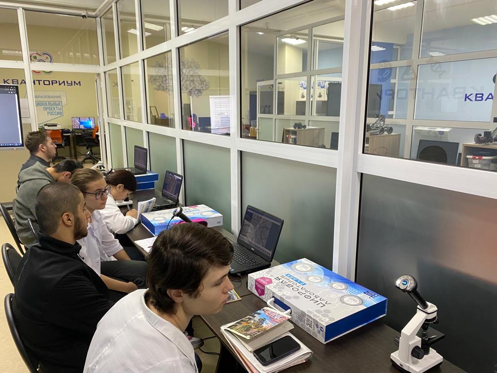 Студенты 2 курса  направления "Биология" профиль "Биоэкология" продолжают изучать биоразнобразие, строение и систематику растений и грибов на постоянных препаратах с использованием световых микроскопов учебно-лабораторного комплекса "Биология" на базе Педагогического технопарка "Кванториум" им. В.А.Садовничего.