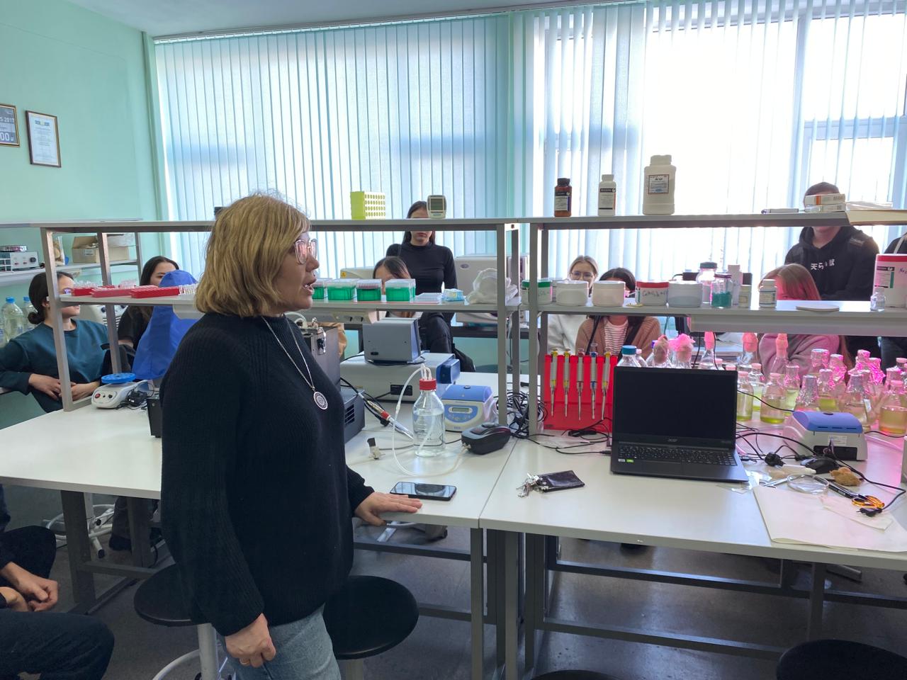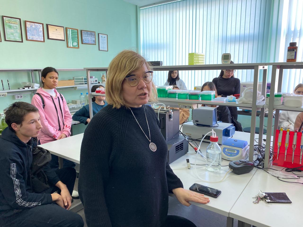 22 февраля 2024 г. естественно-географический факультет посетили школьники старших классов и педагоги Гафурийского района РБ. Заместитель декана по воспитательной работе Альбина Бадикова рассказала гостям о нашем факультете, о направлениях подготовки, реализуемых на ЕГФ, о том, какие нужно сдавать ЕГЭ для поступления на специальности ЕГФ. Профессор кафедры биоэкологии и биологического образования, заведующий Научно-исследовательской лабораторией молекулярной систематики фототрофных микроорганизмов им. Л.С. Хайбуллиной, научный руководитель ЕГФ Лира Гайсина провела для ребят мастер-класс по культивированию микроскопических водорослей и их использованию в биотехнологии. Лира Альбертовна рассказала о проекте "Стимуляторы роста и биопестициды на основе водорослей и цианобактерий", который реализуется в рамках Евразийского научно-образовательного центра мирового уровня.