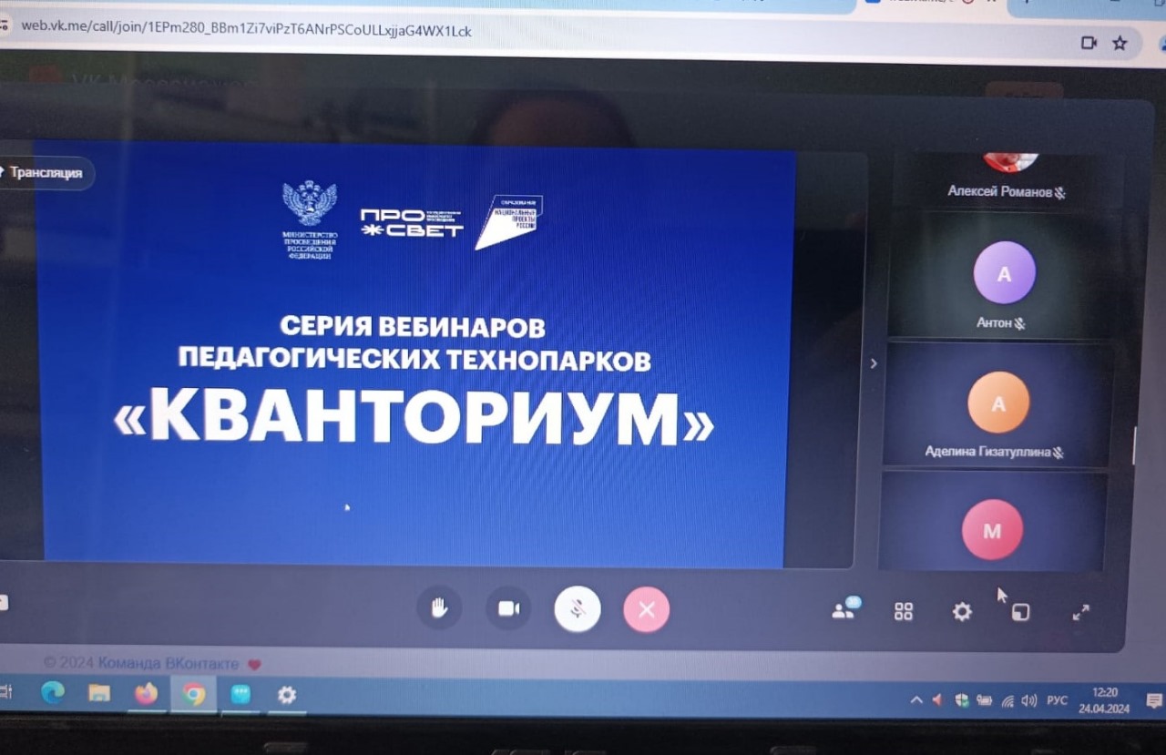 24 апреля 2024 состоялся очередной вебинар «Педагогический технопарк «Кванториум», на котором были рассмотрены возможности студии для записи вебинаров и презентационного контента.