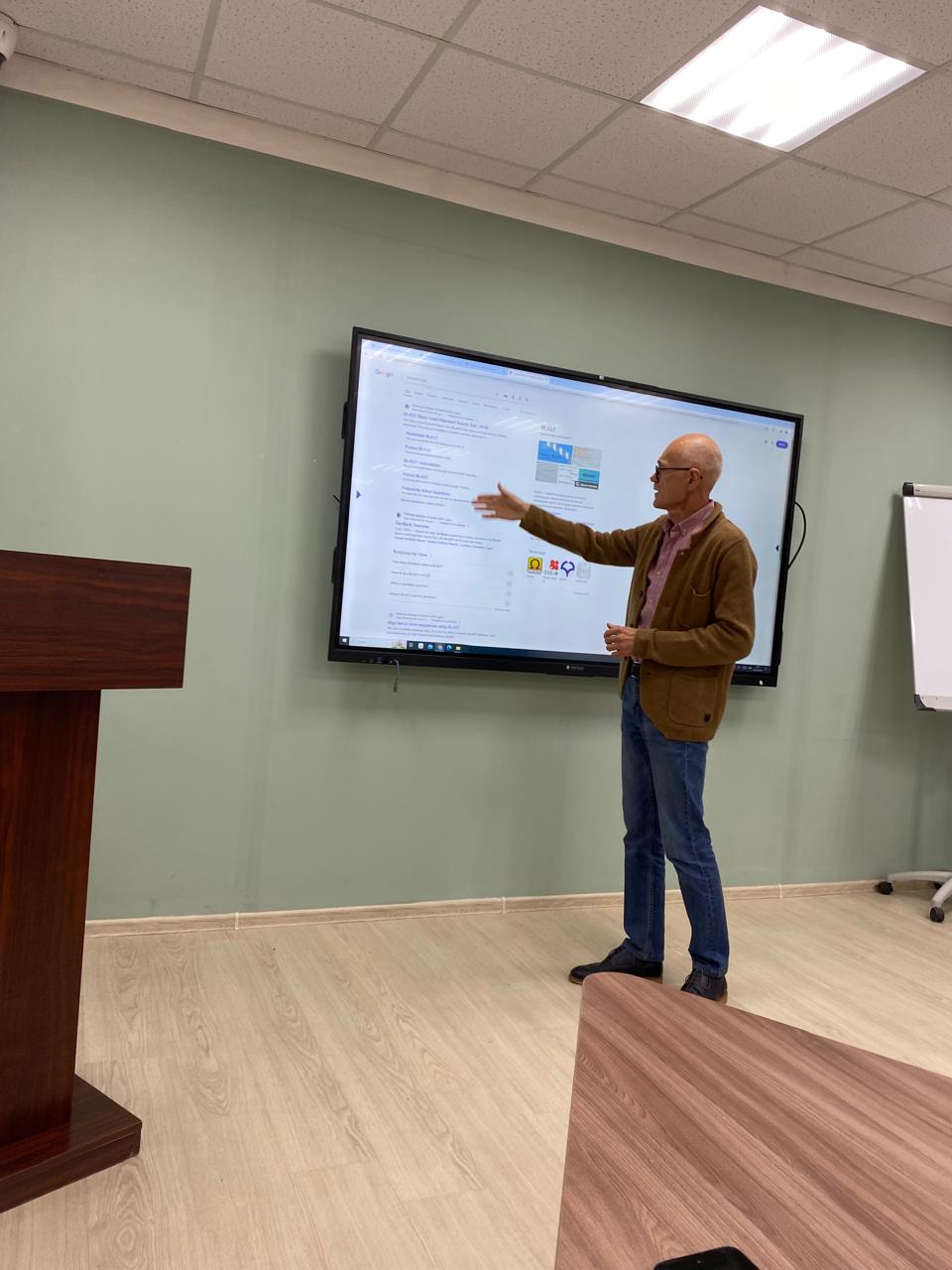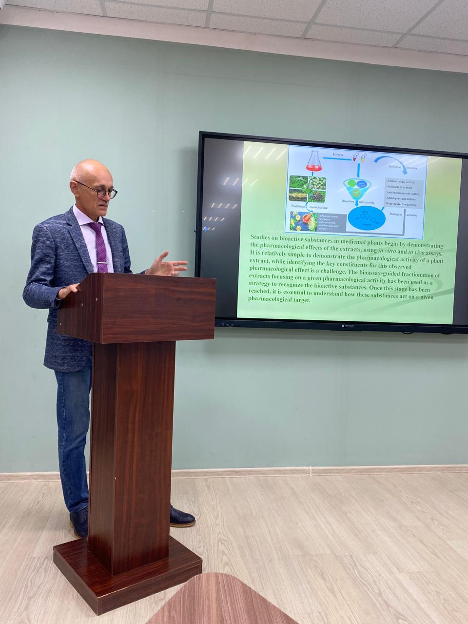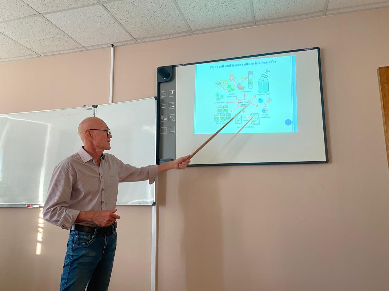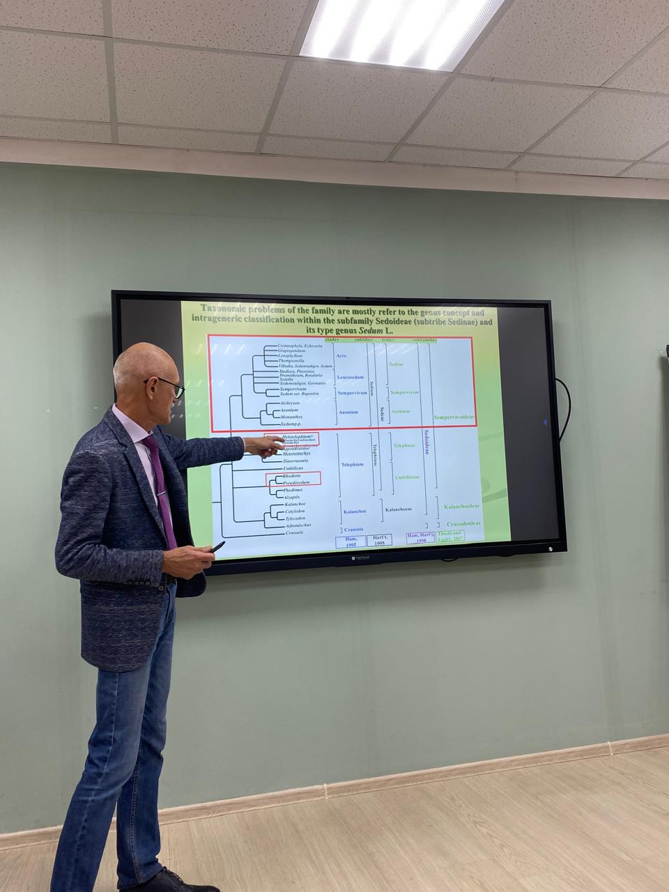 С 30 сентября по 4 октября директор ФНЦ биоразнообразия наземной биоты Восточной Азии ДВО РАН, член-корреспондент РАН, доктор биологических наук Андрей Анатольевич Гончаров прочитал курс лекций для студентов и магистрантов естественно-географического факультета. Тематика лекций была направлена на изучение биоразнообразия Дальнего Востока России, его ресурсного потенциала, особое внимание было уделено использованию растений в биотехнологии, способам повышения продуктивности вторичных метаболитов в культуре клеток лекарственных растений методами генетической инженерии, подробно Андрей Анатольевич остановился на характеристике отдельных групп лекарственных растений, таких как Panax ginseng, Gastrodia elata, Rhodiola rosea. 3 октября Андрей Гончаров провел мастер-класс для преподавателей и студентов биологов по построению филогенетических деревьев водорослей и цианобактерий.
