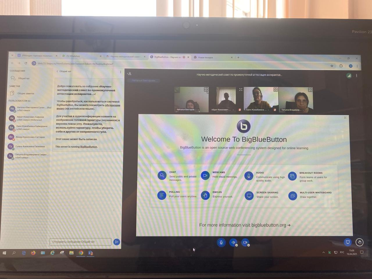 16 апреля 2025 г. состоялась апробация результатов исследования аспирантов 4 года обучения на заседении НАУЧНО-МЕТОДИЧЕСКОМ СОВЕТА ПО ГРУППАМ НАУЧНЫХ СПЕЦИАЛЬНОСТЕЙ 1.5. БИОЛОГИЯ и 1.6. НАУКИ О ЗЕМЛЕ. Члены научно-методического совета факультета под председательством заведующего кафедрой экологии, географии и природопользования, д.б.н. Венера Нурулловича Саттарова, заслушили выступления аспирантов выпускных курсов обучения о проделанной научно-исследовательской работе за 2024-2025 учебный год и за период обучения в целом.
