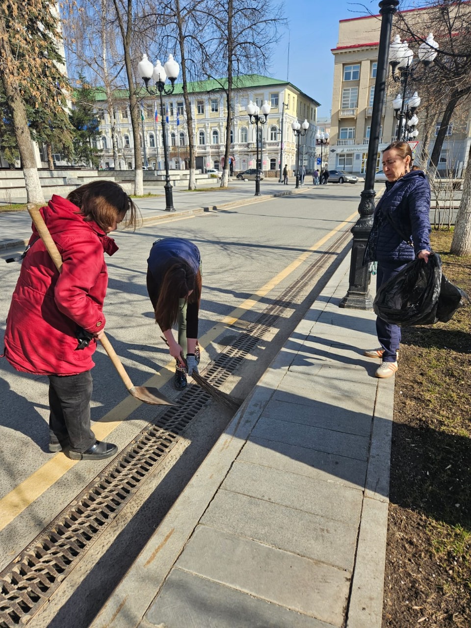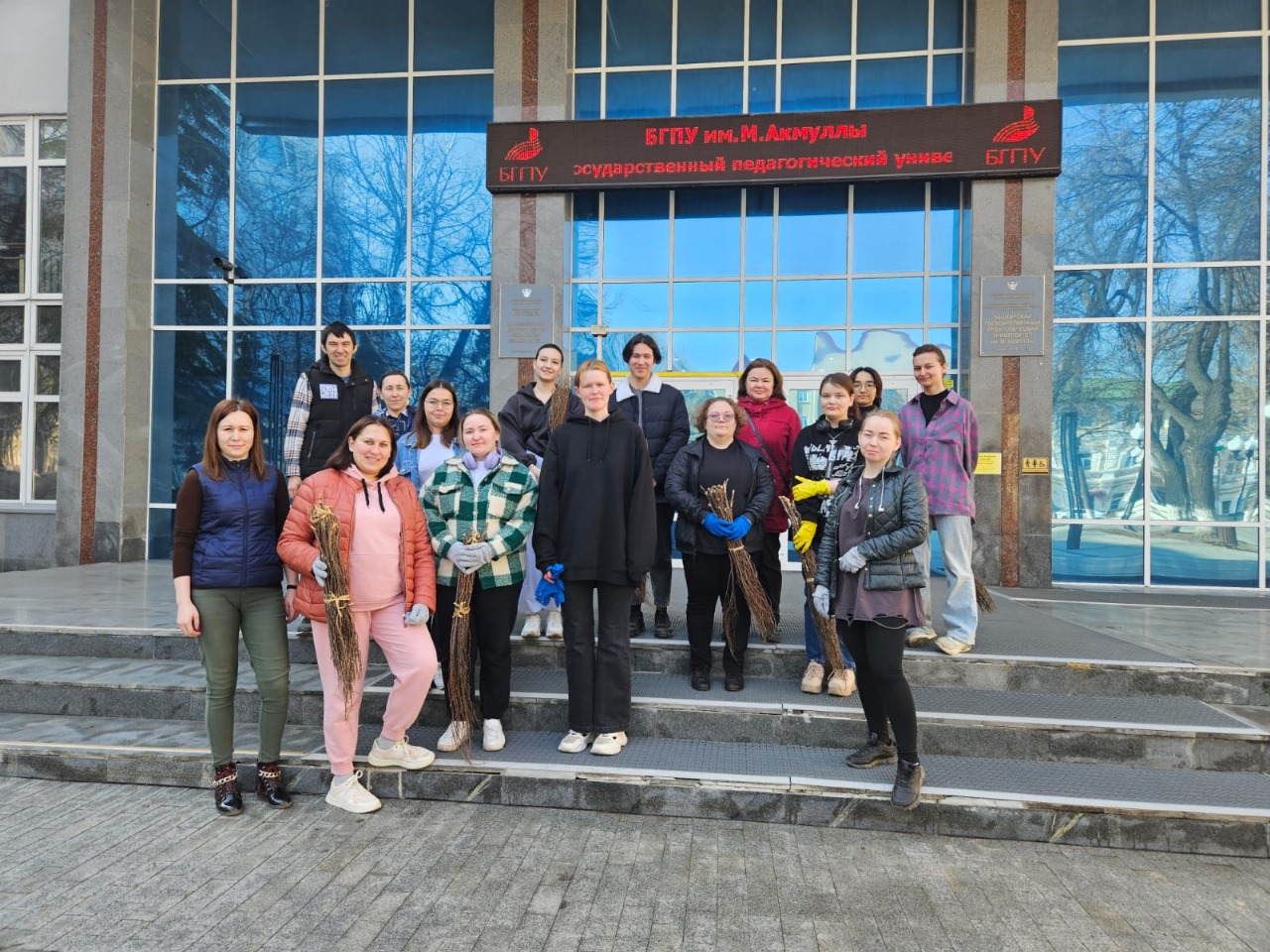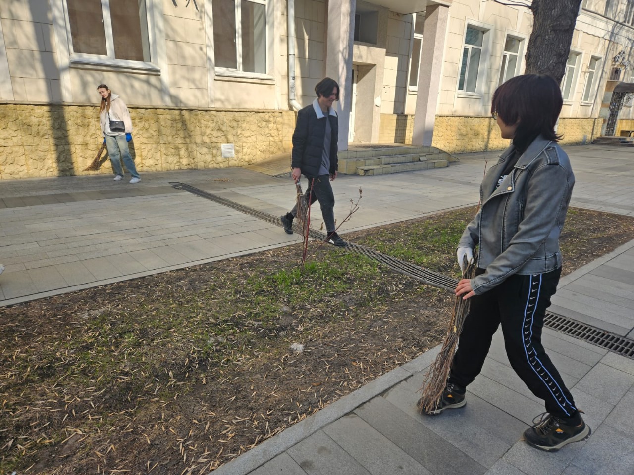 19 апреля 2025г, в целях благоустройства и поддержания чистоты и порядка территории, прилегающие к зданиям и сооружениям университета, студенты и преподаватели естественно-географического факультета приняли участие в общегородском субботнике.
