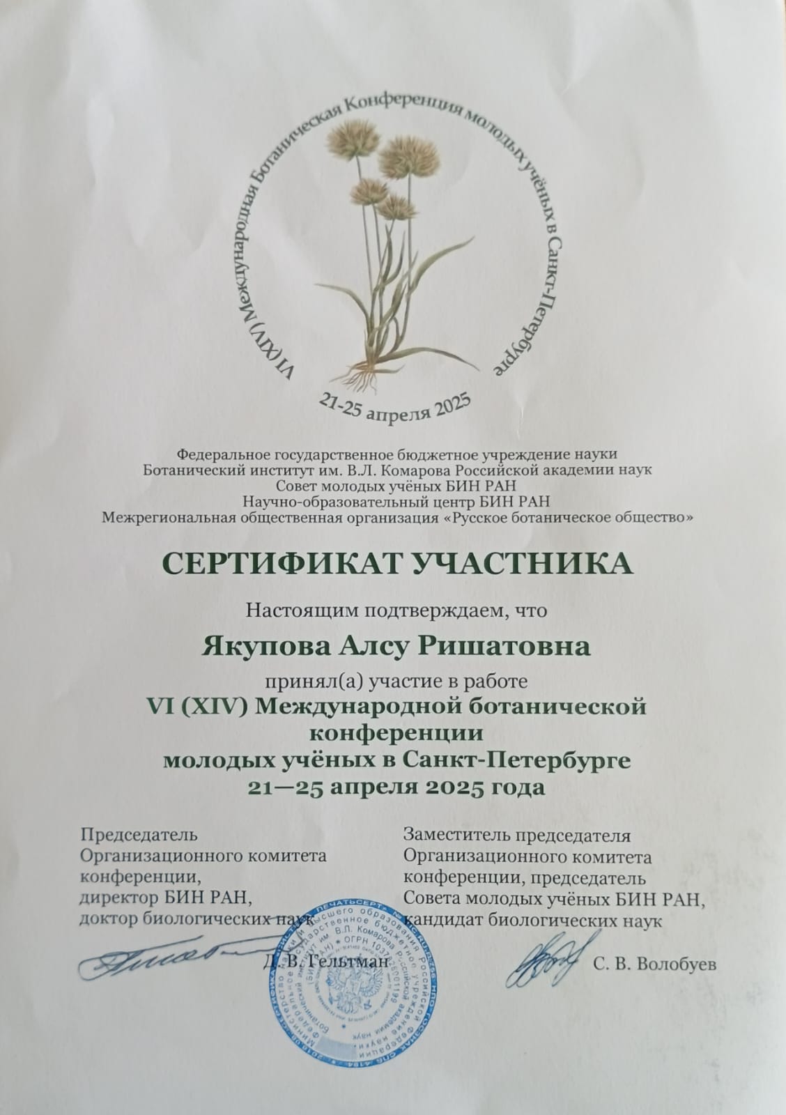 Студент-биоэколог Алсу Якупова приняла участие в ботанической конференции молодых ученых