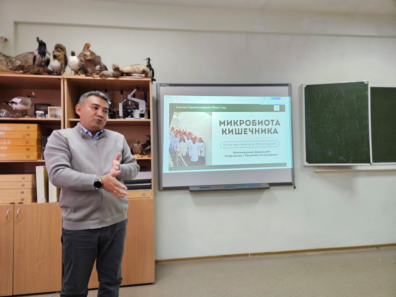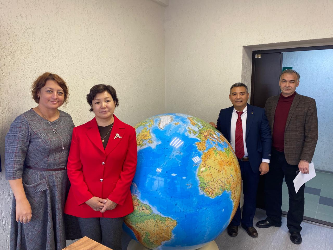 С 10 по 14 ноября 2025 г. на кафедре биоэкологии и биологического образования естественно-географического факультета работала делегация Кыргызско-Турецкого университета "Манас", в составе декана факультета инженерии, доцента отделения "Экологическая инженерия "Университета «Манас», к.б.н. Нурзат Эрмековны Тотубаевой и и.о. доцента отделения "Пищевая инженерия" Руслан Адиль Акай Тегин. Ученые из университета "Манас" приняли  активное участие в мероприятиях кафедры, а именно - познакомились с лабораторной базой естественно-географического факультета; с проектами, которые реализуются учеными ЕГФ; приняли участие в семинаре "Организация и проведение научных исследований по биологии и альгологии"; мастер-классах по приготовлению слайдов для изучения диатомовых водорослей; по определению биоразнообразия водорослей и цианобактерий озера Иссык-Куль". Ученые обсудили совместную заявку на грант по восстановлению нарушенных земель и научную статью по влиянию рекреационной нагрузки на видовой состав водорослей и цианобактерий.