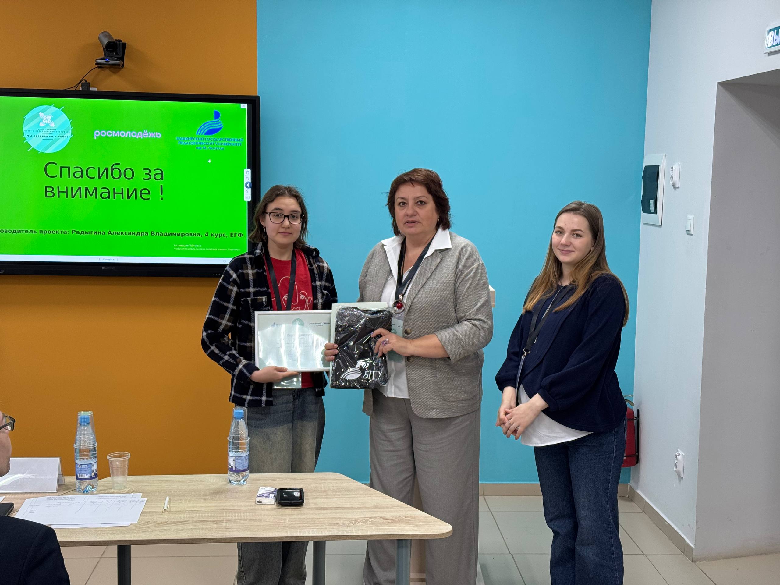 Радыгина Александра Владимировна, руководитель проекта "Инклюзивные военно-исторические экскурсии "Мы расскажем о войне"", студентка 4 курса Б_БИО , представила тему «Роль инклюзивных военно-исторических экскурсий в патриотическом воспитании школьников». Она рассказала о значении инклюзивного подхода в организации экскурсий, которые помогают формировать уважение к истории и культуре среди подрастающего поколения.