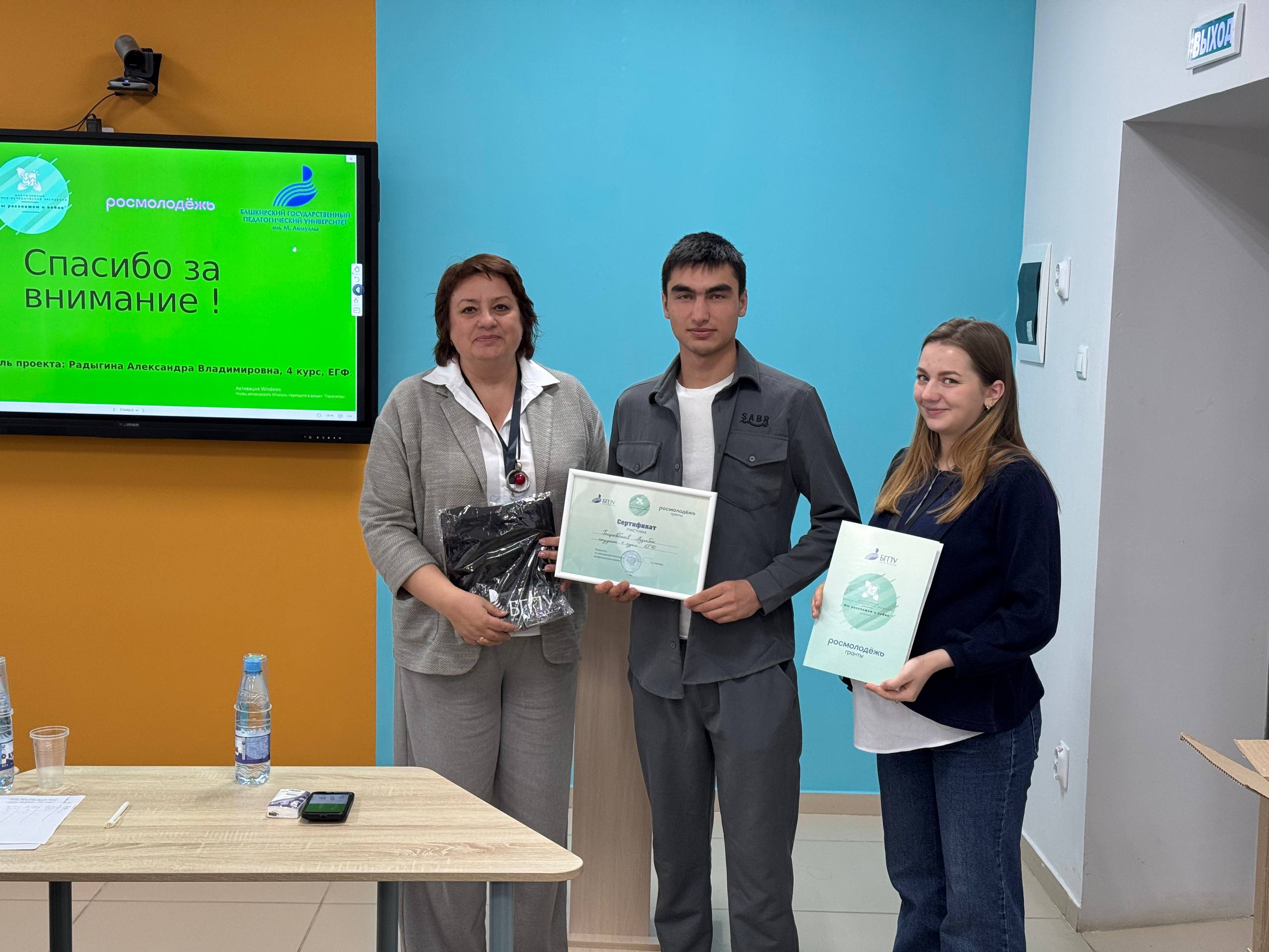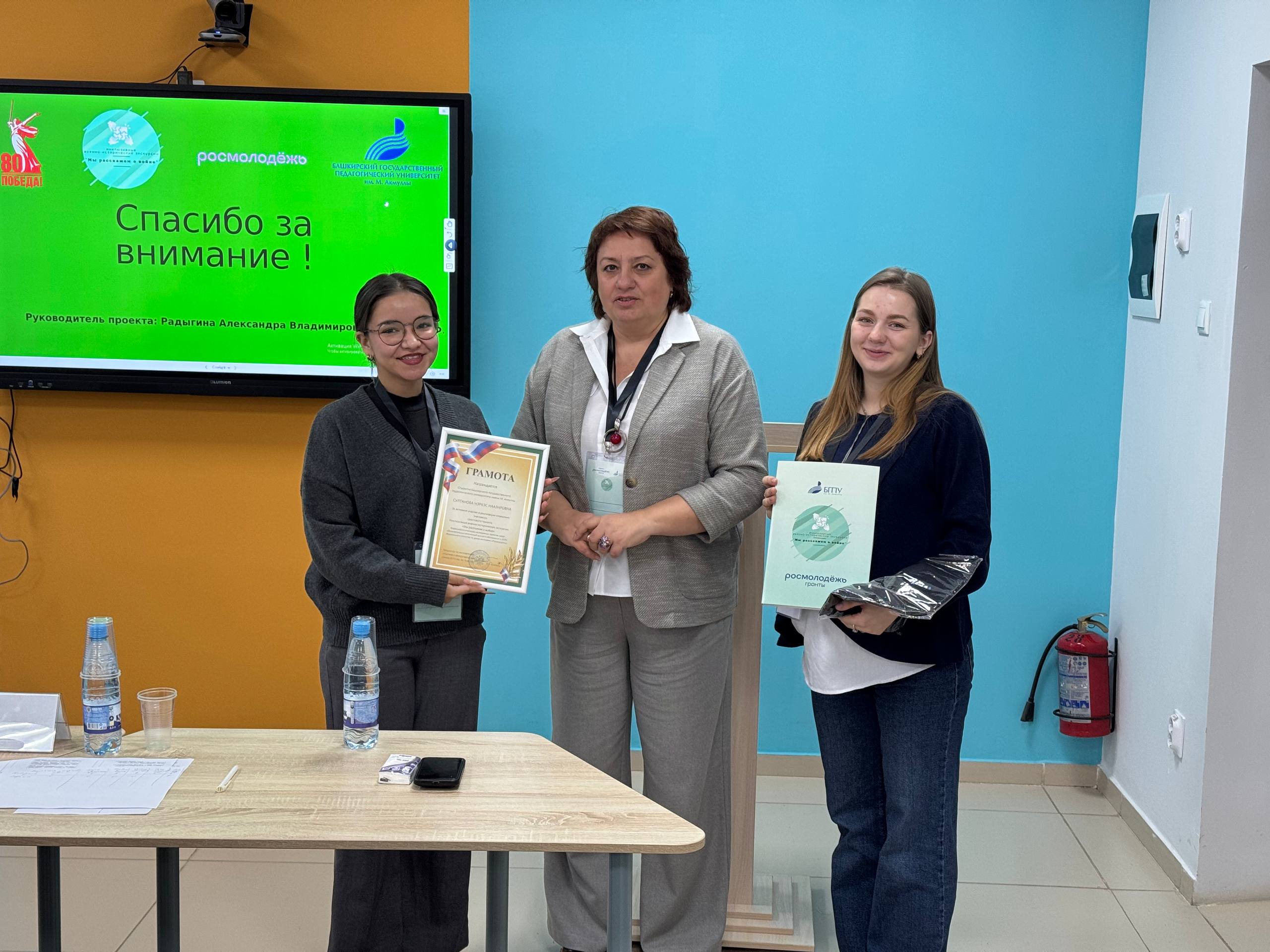 В завершение мероприятия были подведены итоги грантового проекта. Наставник проекта Наталья Викторовна Суханова вручила волонтерам проекта сертификаты и грамоты за активное участие и вклад в патриотическое воспитание молодежи.
