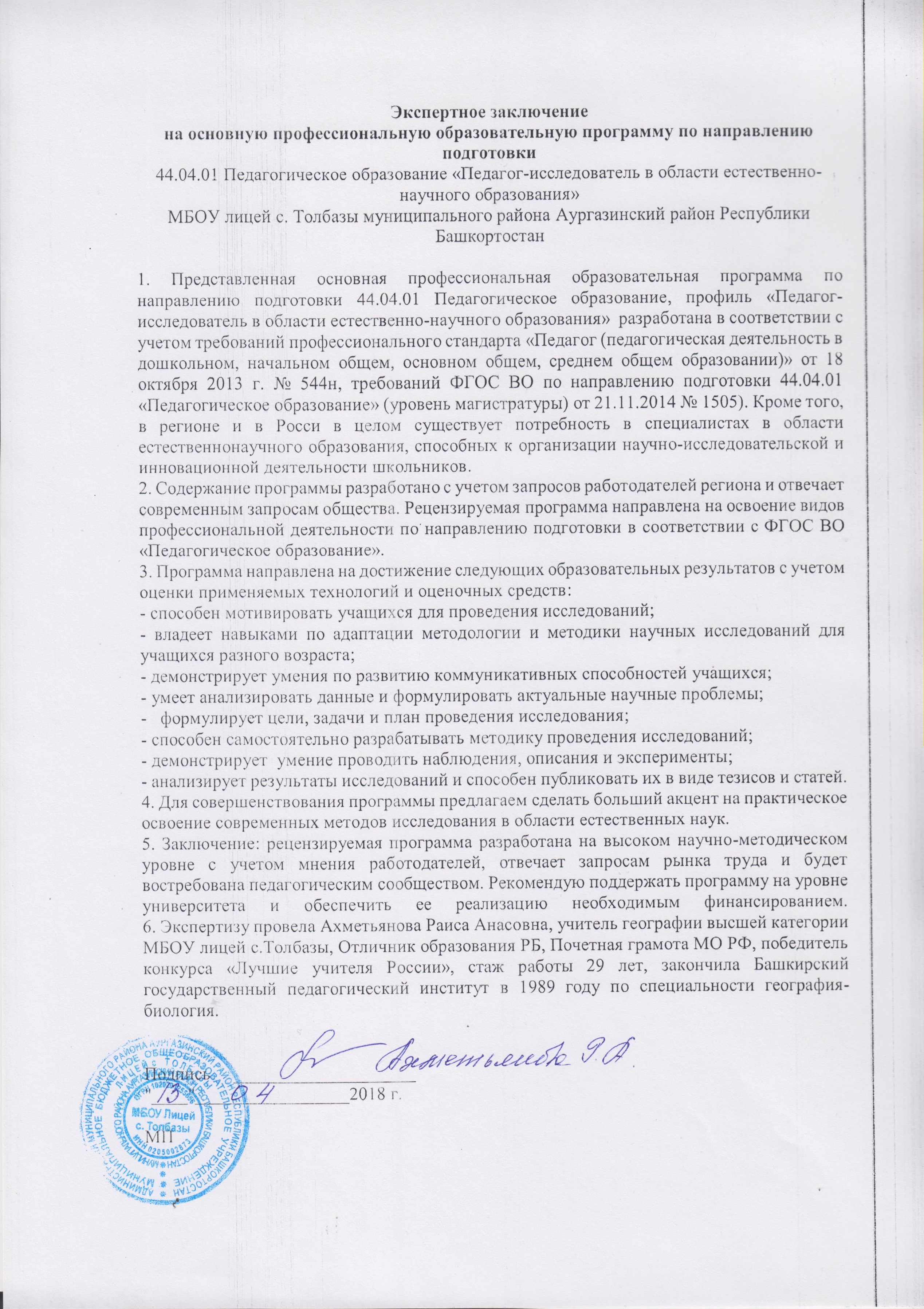 Экспертное заключение