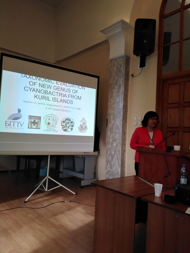 В конференции приняли участие 168 участников из России, Республики Беларусь, Литвы, США, Израиля и Индии. Лира Альбертовна представила пленарный доклад «Таксономическая оценка нового рода цианобактерий с Курильских островов» и секционный доклад «Предварительные сведения о цианобактериально-водорослевых сообществах литорали меромиктического озера Шира (Республика Хакасия, Россия)». Резеда Аллагуватова представила секционный доклад «Изучение биоразнообразия цианобактерий вулканических грунтов и почв Курило-Камчатского вулканического пояса». Необходимо отметить, что результаты исследований, представленных на конференции альгологами БГПУ им. М. Акмуллы, были получены в результате сотрудничества с коллегами из Бенаресского индуистского университета (Индия); ФНЦ Биоразнообразия ДВО РАН, Владивосток; Института Биофизики СО РАН и Сибирского федерального университета, Красноярск.