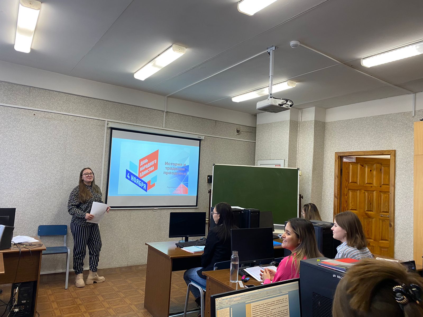 3 ноября 2022 года в группе Б_Ген-41-19 в рамках проекта "Разговоры о важном" была проведена беседа об истории праздника "День народного единства". Этот знаменательный день связан с окончанием Смутного времени на Руси после освобождения Москвы народным ополчением под руководством Кузьмы Минина и Дмитрия Пожарского от польско-литовских интервентов 4 ноября 1612 года. Годовщина подвига русских воинов отмечается и сегодня. Студенты обсудили исторические события и отметили особую значимость праздника — объединение всех жителей России вне зависимости от социального статуса, религиозных взглядов или национальной принадлежности.