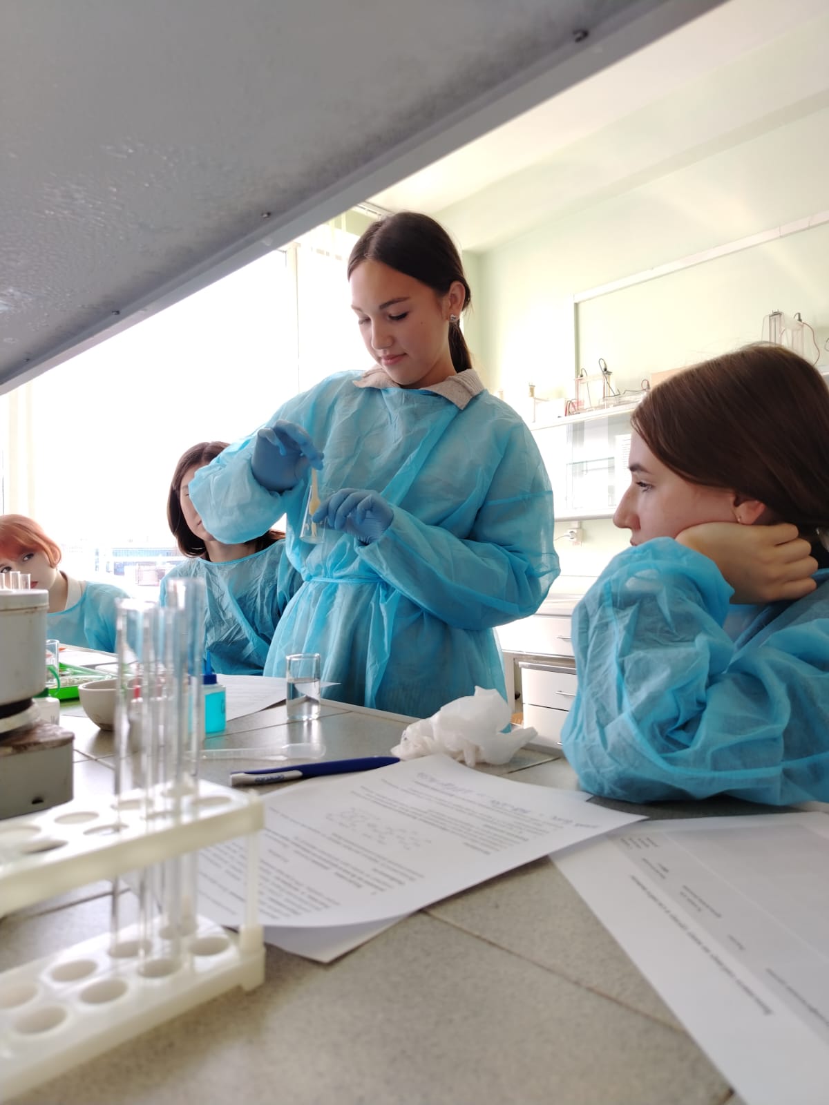 Профессиональная проба дала школьникам возможность освоить методику проведения лабораторных исследований по биохимии. Ученикам было предложено провести захватывающее исследование состава пищевых продуктов, тщательно проанализировать полученные результаты и сделать обоснованные выводы. Занятие прошло в динамичной интерактивной форме: участники разделились на команды, взяв на себя роли преподавателей и ассистентов, где каждый ученик уверенно руководил определенной частью эксперимента, способствуя общему успеху группы.