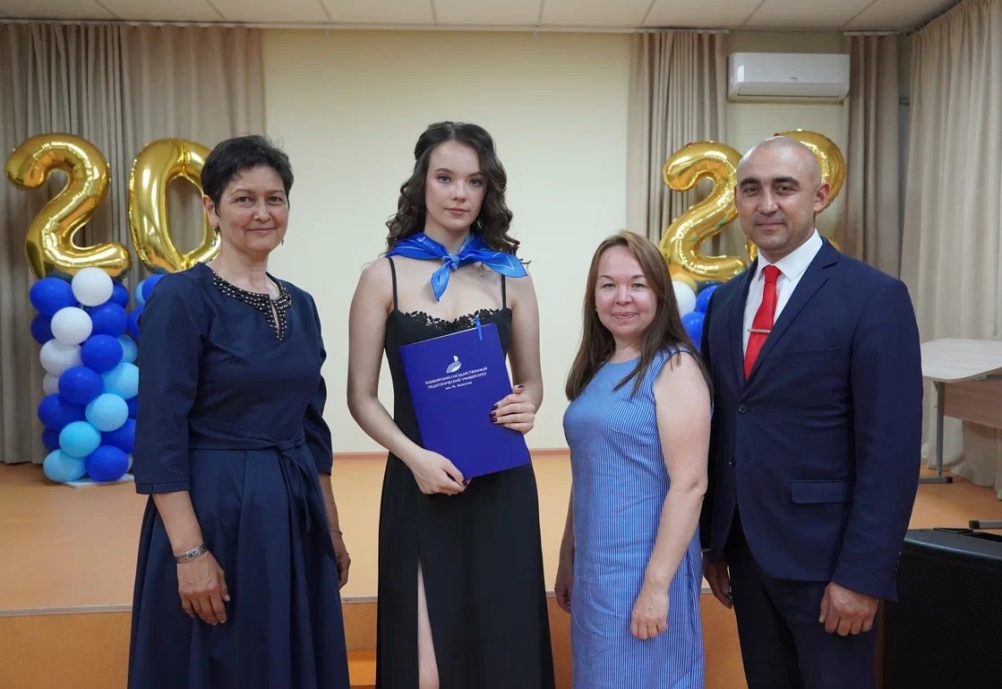 В Центре образования №25 из нынешнего выпуска один человек точно решил идти в педагогический. Подарили на удачу наш вузовский галстук-косынку, от всей души пожелали Анастасии, чтобы всё сложилось в её пользу, потому что через пять лет она планирует вернуться в свою родную школу учителем иностранного языка. В добрый путь, ребята!