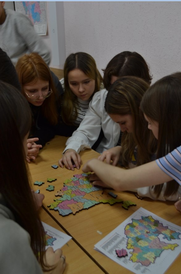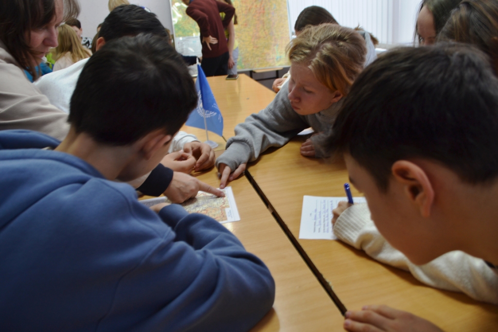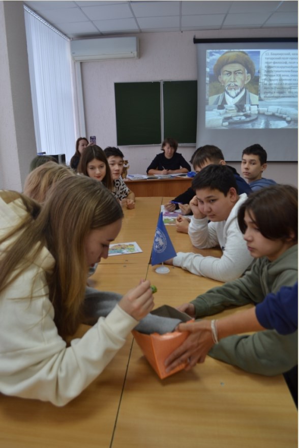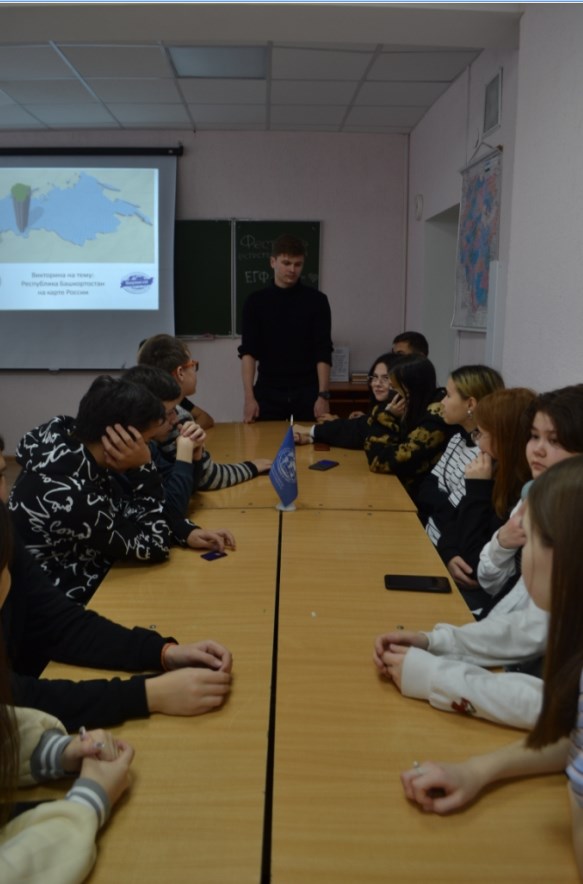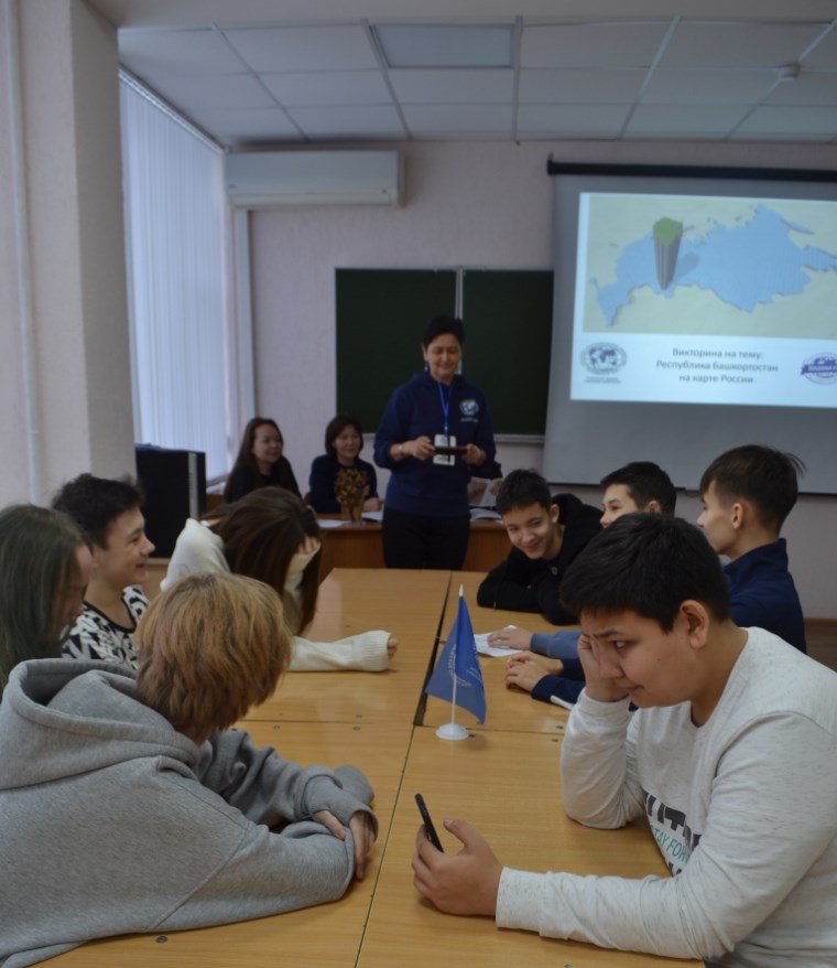 Программа мероприятия была построена по принципу "Тяжело в учении - легко в бою!".  Все ребята сразу объединились в три команды, и на первом этапе им предстояло поработать головой - совместно найти ответы на 11 заданий викторины, которую провел старший преподаватель Роман Маратович Халитов. Вопросы были разного уровня сложности, но так и интереснее. После того, как письменные ответы были сданы на оценку экспертам, все вместе разобрали каждый вопрос подробно: кто как ответил и почему, какие подсказки были на слайдах и в формулировках самих вопросов, как можно найти ответ "методом исключения" - умение рассуждать пригодиться ребятам в любой ситуации! Во втором конкурсе капитанам команд предстояло найти ответы на вопросы по карточкам, которые они вытягивали сами из общего банка - ответить самим или с помощью команды. А на третьем этапе все команды включились в работу руками: предстояло собрать спилс-карты Башкортостана - те же пазлы, но административные. И это было не так просто, как кажется!