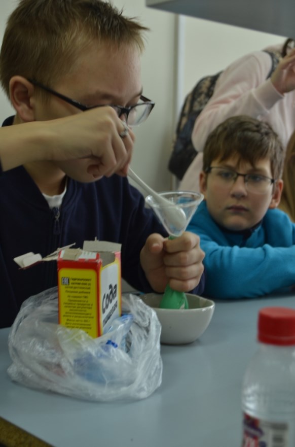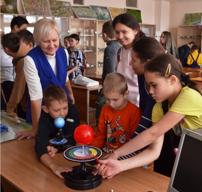 После лекции-интенсива желающие посетили геологический кабинет-музей и экологический центр БГПУ им.М.Акмуллы, где познакомились с некоторыми палеонтологическими образцами и сами поставили несложные, по очень показательные опыты. Самым юным участникам встречи очень понравился теллурий - модель вращения Земли вокруг Солнца и Луны вокруг Земли.