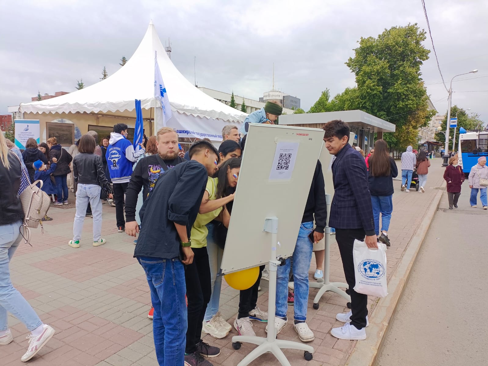 12 июня в Уфе горожане и гости столицы отметили День России, 449-летие основания столицы Башкирии и 269-летие со дня рождения национального героя Салавата Юлаева. Одна из главных праздничных площадок развернулась на улице Ленина - на площади перед ГКЗ «Башкортостан» с названием «Уфа — студенческая». В тематических шатрах ведущие вузы и колледжи Уфы представили свои презентационные экспозиции. На площадке БГПУ им М.Акмуллы естественно-географический факультет представили  активисты Регионального отделения Русского географического общества и молодежного клуба "ГеоЛог" Аяз Ахмедьянов и Данил Денисов, преподаватели кафедры экологии, географии и природопользования ЕГФ  Роман Халитов, Галия Гильманова, Галия Мухаметова, методист-географ Сергей Уткин. Горожане и гости столицы с удовольствием собирали спилс-карты России и Башкортостана, играли в авторскую настольную игру-бродилку по Башкирии и проходили онлайн викторину "Малый географический диктант. Башкирия - 2023". Несколько раз обновлялся рекорд сбора карты Башкортостана на время, который установился в 4:50 - сможете повторить?