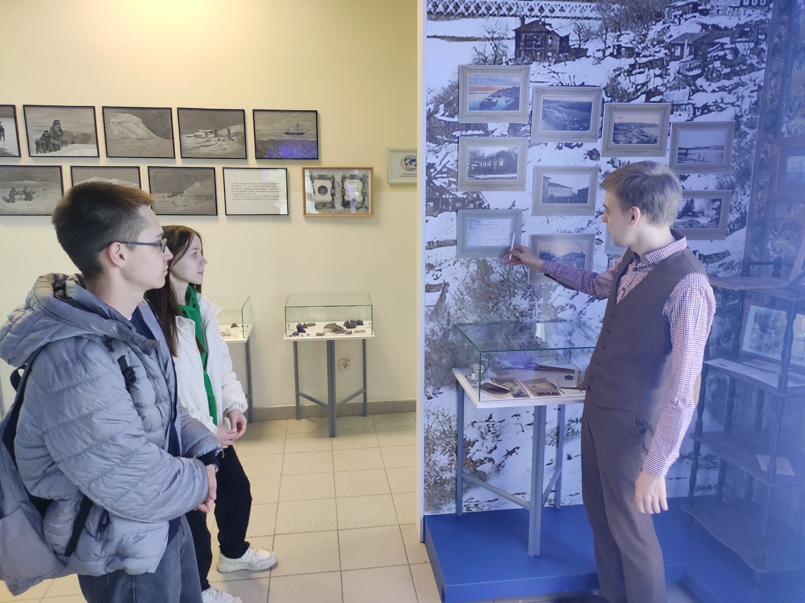 В ходе встречи старший преподаватель Р.М. Халитов рассказал студентам историю изучения Арктики. В 2025 г. отмечается 500-летие с начала истории освоения Россией Северного морского пути. Эта важнейшая транспортная магистраль, освоена и развивается благодаря атомному ледокольному флоту, который есть только в нашей стране. В 2024 г. атомному ледокольному флоту России, куда входят 8 атомоходов, исполнилось 65 лет.