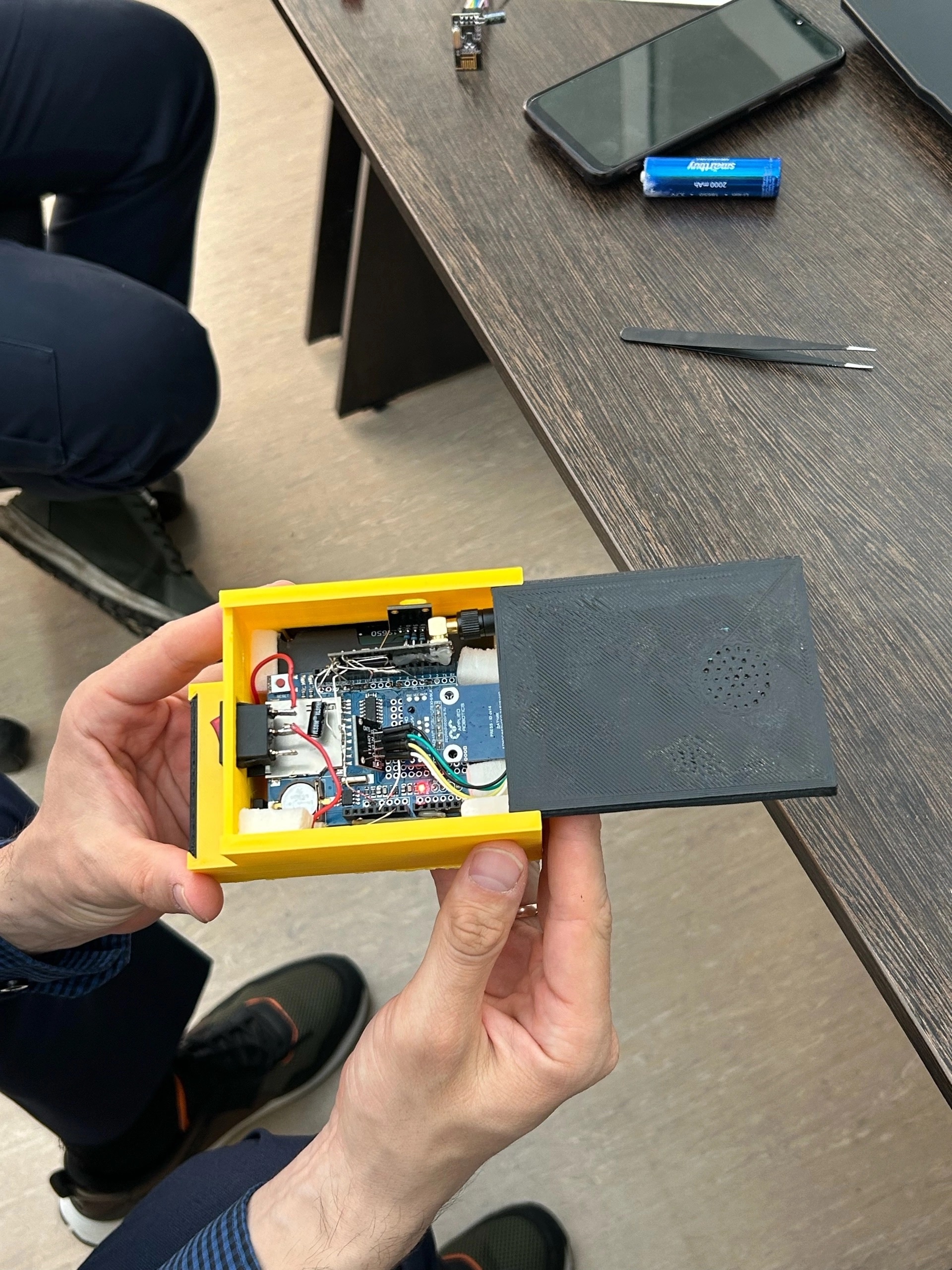 Студент магистратуры ИФМЦН Яхин Артур Римович собрал на базе электронной платформы Ардуино устройство с комплексом датчиков. Платформа Ардуино это универсальный электронный конструктор, который позволяют выполнить широкий спектр задач. Одной из составляющей платформы является микроконтроллер, с помощью набора команд задается последовательность работы устройства. Прототип регистрирует следующие показатели окружающей среды: температура, влажность, давление, высоту над уровнем моря. Особенность устройства заключается в портативности, автономности, записи и бесконтактной передачи измеренных данных.