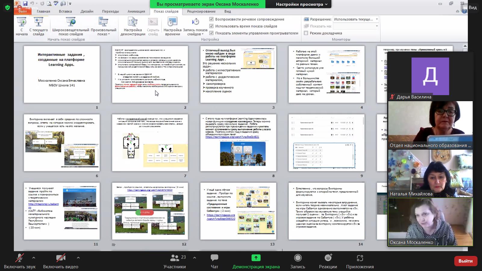 - Оксаны Вячеславны Москаленко (учителя МБОУ «Школа №141», г.Уфа);