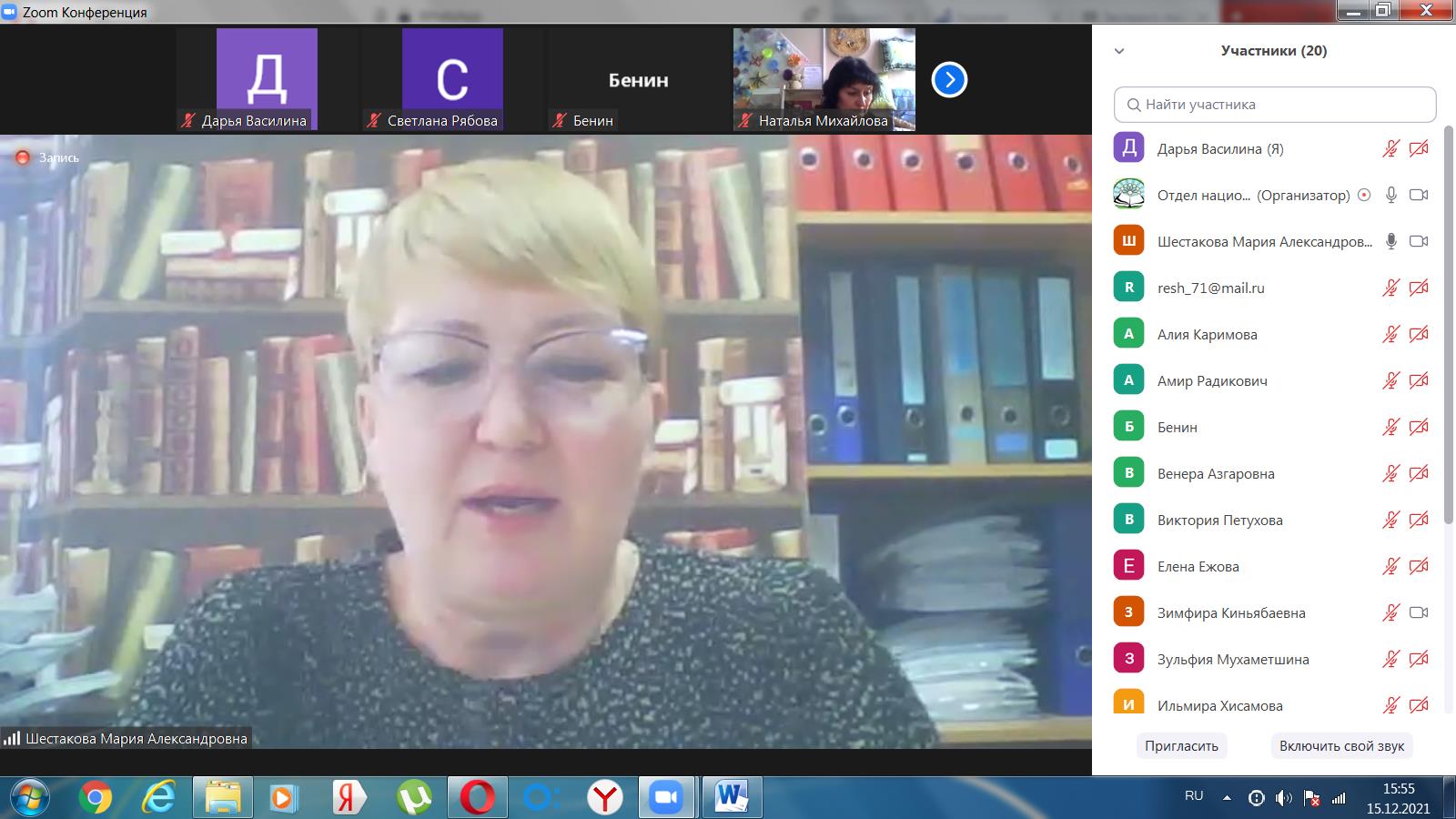 15 декабря 2021 года Отдел национального образования Научно-информационно-методического центра совместно с кафедрой культурологии и социально-экономических дисциплин БГПУ им. М.Акмуллы провели Круглый стол по обобщению педагогического опыта учителей школ Республики Башкортостан «Преподавание курса ОДНКНР в школе: проблемы, вопросы, опыт». Представителями кафедры культурологии и социально-экономических дисциплин стали профессор Владислав Львович Бенин, доценты Светлана Владимировна Рябова, Дарья Сергеевна Василина.