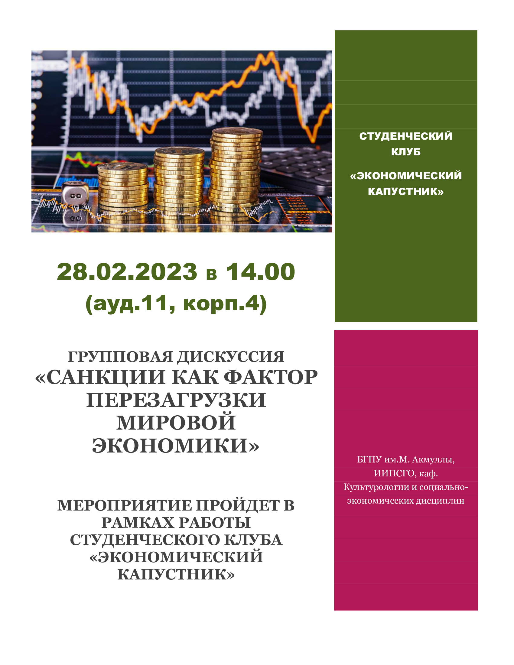 Мероприятие пройдет 28 февраля в 14:00 в ауд.11 корпуса 4
