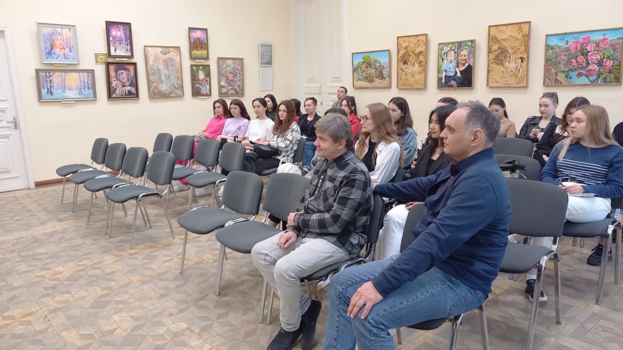 Спикер - член союза художников ЮНЕСКО Михаил Гладких рассказал о своих работах и ответил на интересующие вопросы студентов.