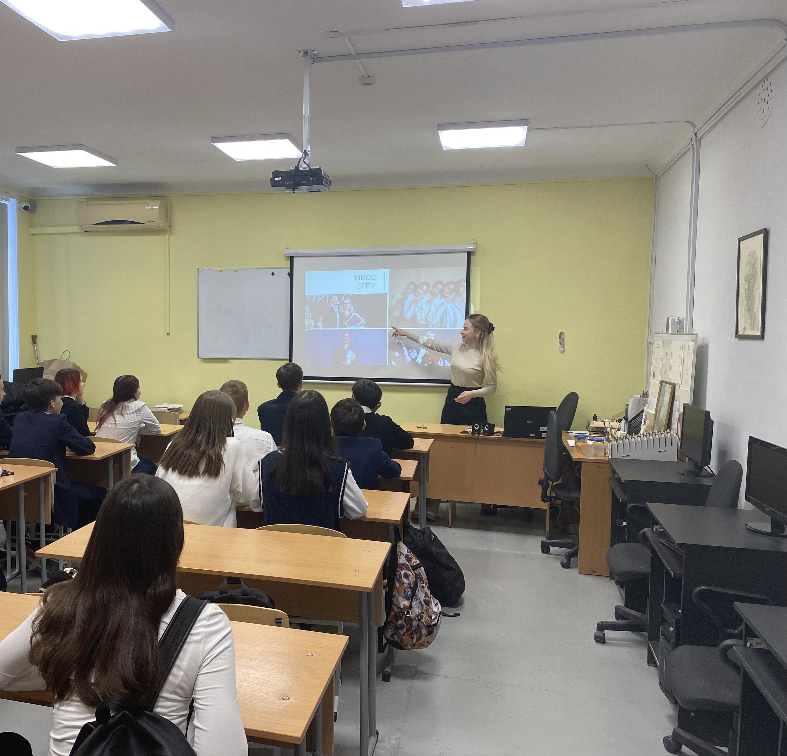 Студенты 4 курса профиля "Мировая художественная культура и экономика" в процессе прохождения педагогической практики проводят профориентационные занятия.