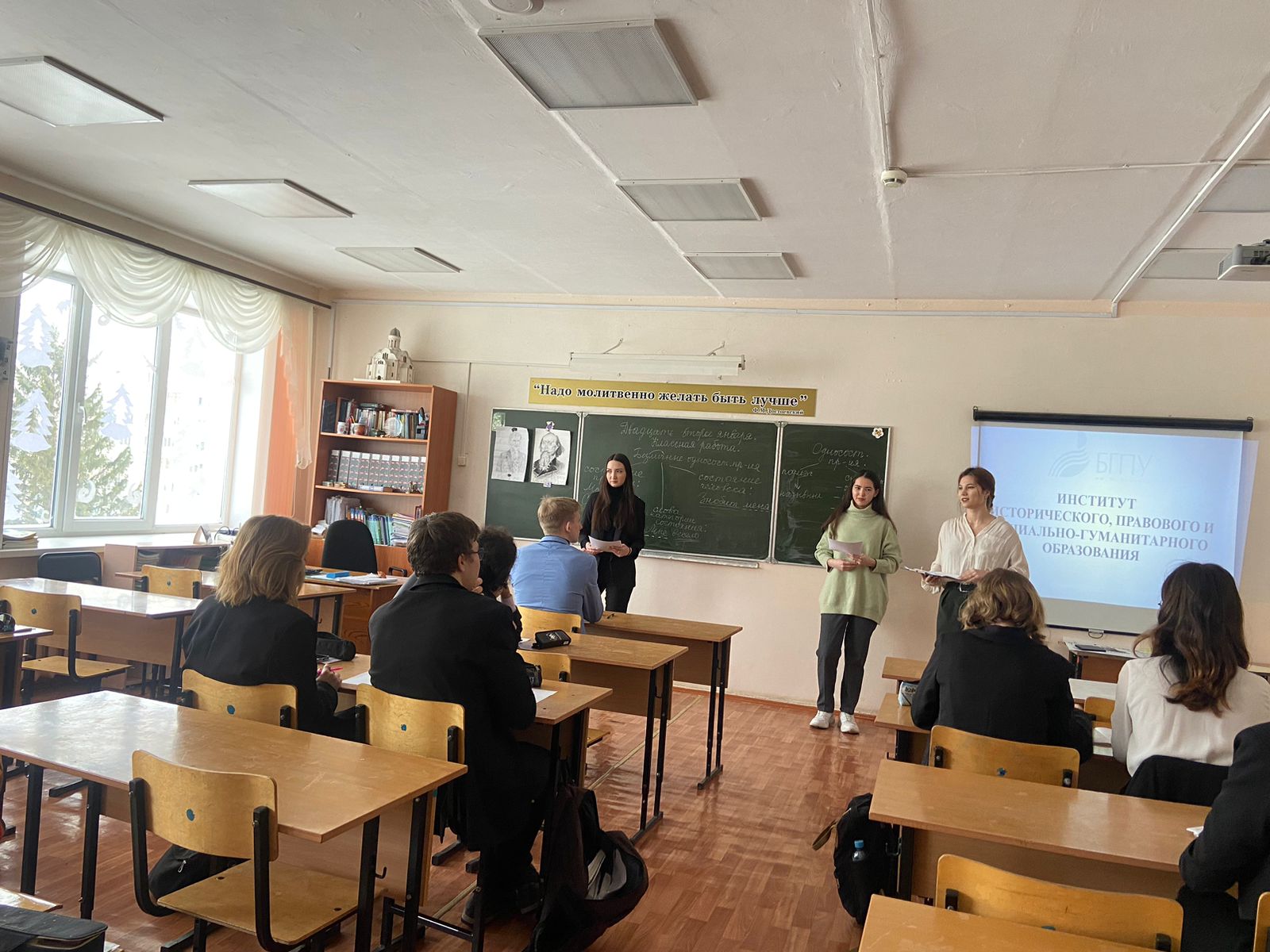 В МАОУ "Школа №113 имени героя Советского Союза Рыбалко Ивана Игнатьевича" в рамках прохождения педагогической практики было проведено профориентационное мероприятие со школьниками. Студенты 4 курса очного отделения профиль "Мировая художественная культура и экономика" Мурзина Дарья, Рыскулова Илюза и Туйгунова Эммилия рассказали о направлениях Института исторического, правового и социально-гуманитарного образования. Обучающиеся школы были проконсультированы относительно форм обучения, условий поступления, особенностей обучения, профессорско-преподавательского состава.
