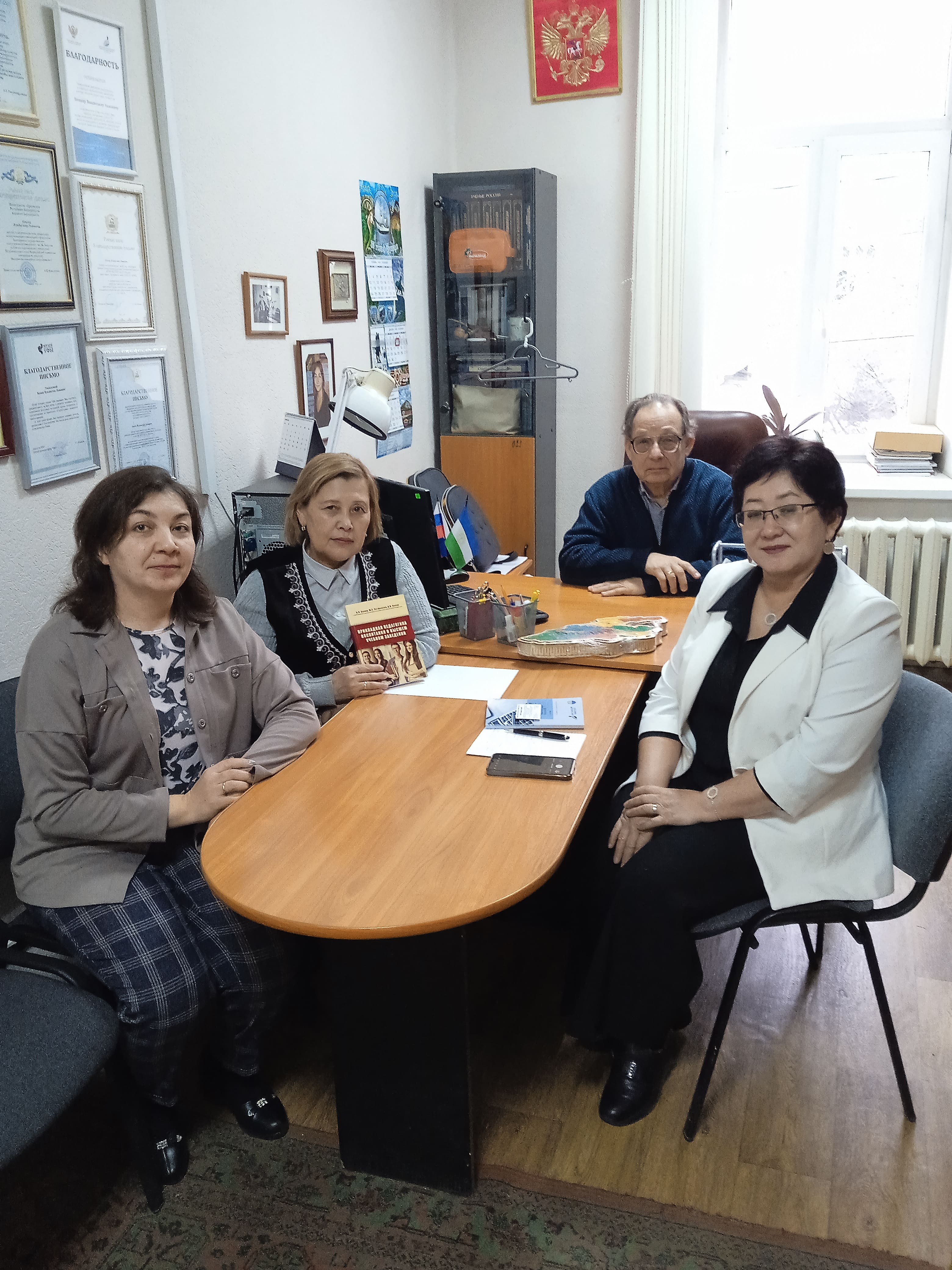 12 декабря старший преподаватель кафедры педагогики Мамбеталиева Гулшайыр Муктарбековна и доцент кафедры экономики и финансов Кудайбердиева Жанара Арапбаевна встретились с заведующим кафедрой культурологии и социально-экономических дисциплин, профессором Бениным Владиславом Львовичем и руководителем основной профессиональной образовательной программы "Экономика и управление", доцентом Баяновой Лейлей Наилевной