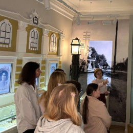 Этот необычный музей разместился в  архитектурном памятнике старой Уфы – восстановленном особняке купцов Соловьёвых, уютном здании конца XIX века. Студенты увидели воссозданные интерьеры конца XIX – начала XX веков стиля модерн.
